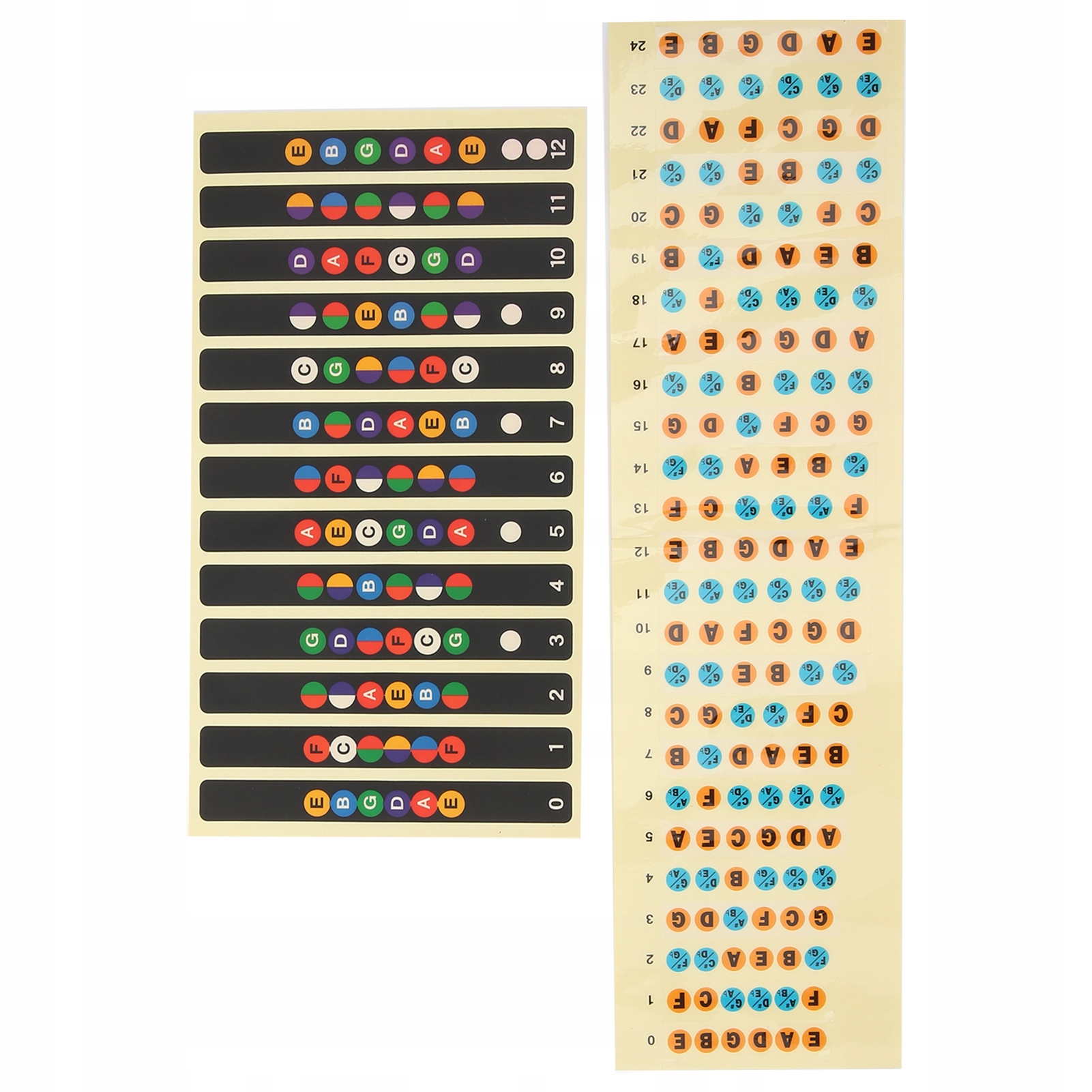 1. Барвисті наклейки грифа призначені для початківців, їх легко читати та вивчати акорди.