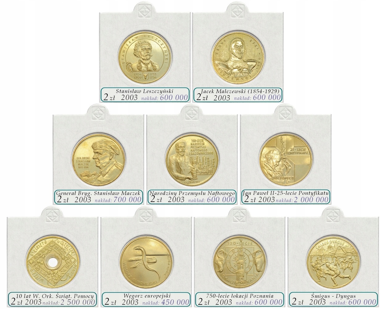 PLN 2 нг 2003. Набір з 9 монет + власників + Описи