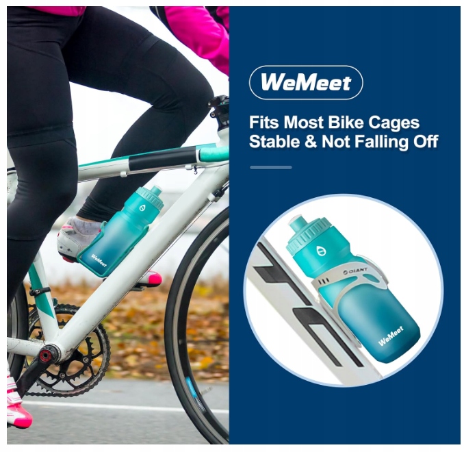 ІДЕАЛЬНО ПІДХОДИТЬСЯ ДЛЯ Кріплення велосипеда. Стандартний розмір герметичної велосипедної пляшки для води Wemeet ідеально сумісний з усіма типами тримачів для велосипедних пляшок з водою. Виріз для пляшки полегшує її захоплення та наповнення під час їзди, а також дозволяє легко помістити її в тримач для пляшки.
