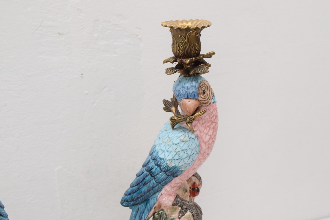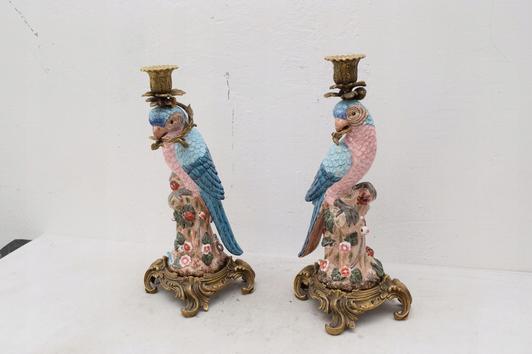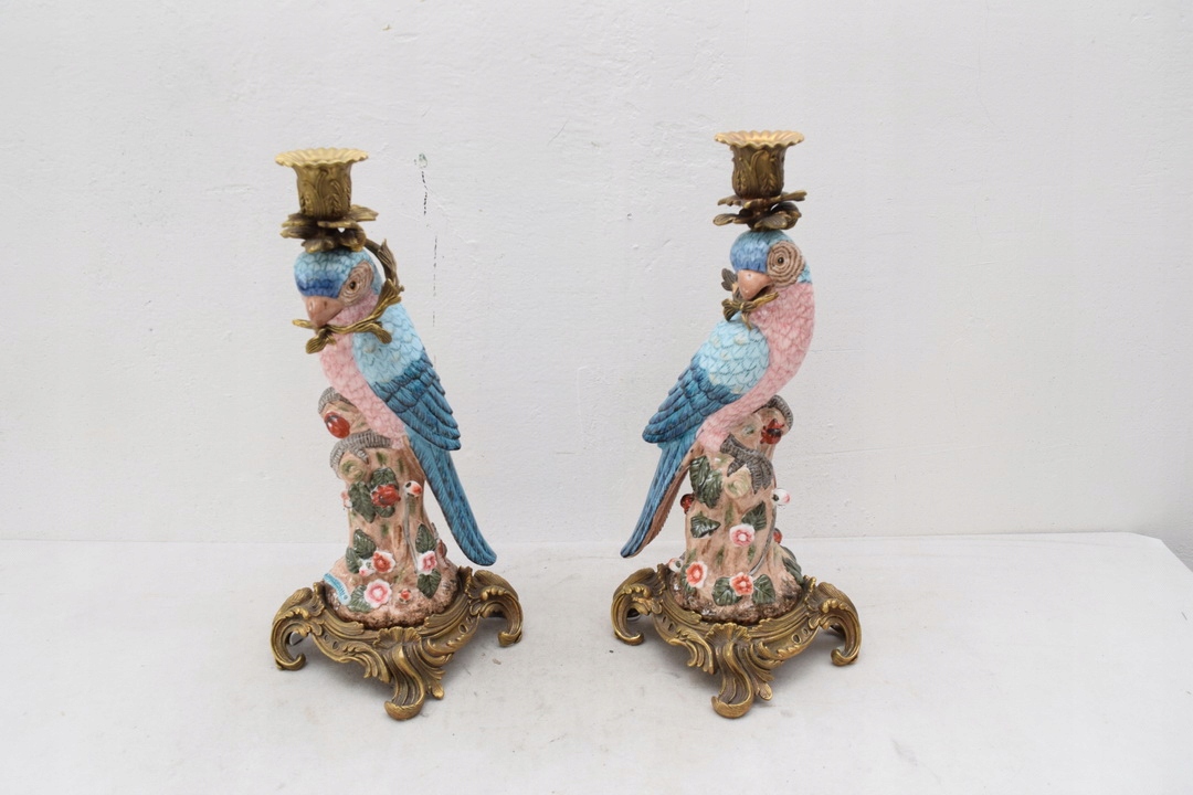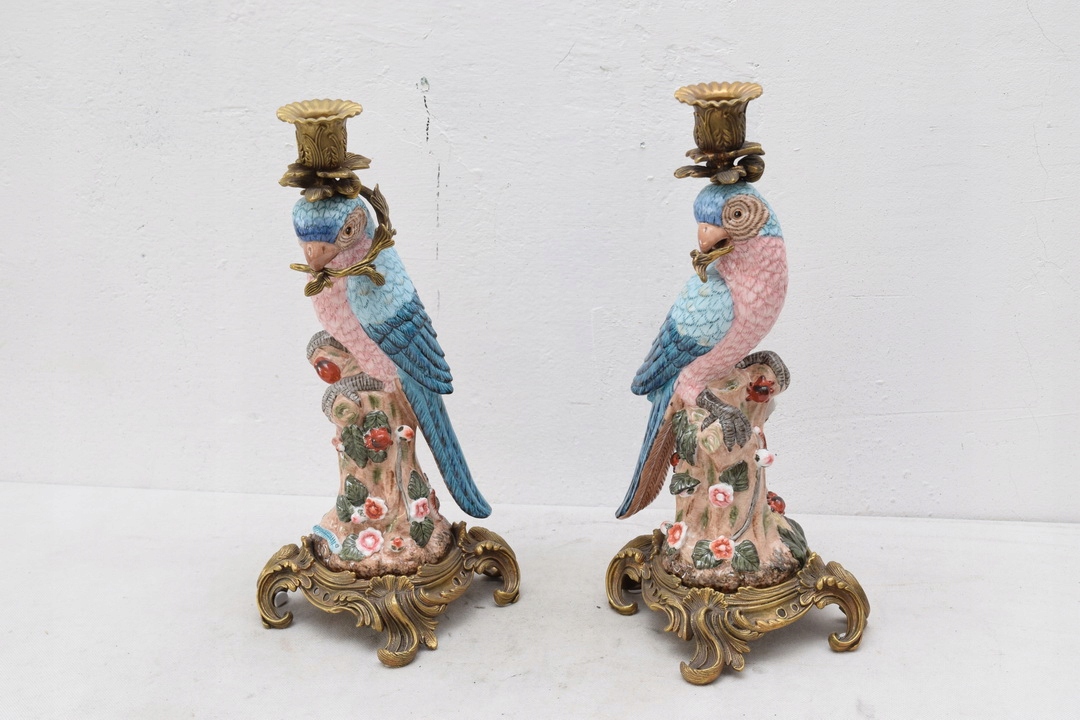 Здрастуйте, сьогодні я хотів би запропонувати вам гарні свічники-папуги з порцеляни, а свічник і прикраси зроблені з бронзи.