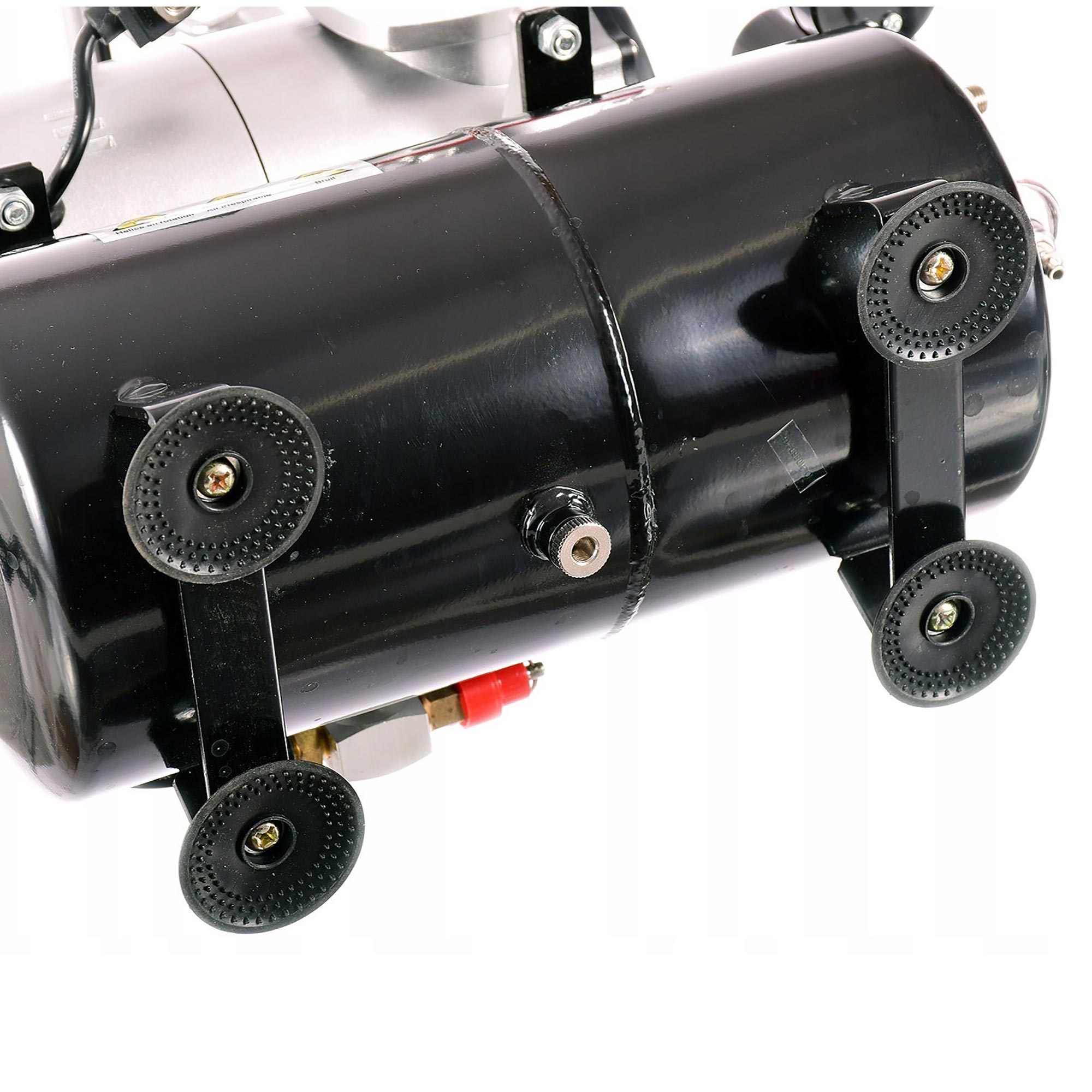 - ГУМОВІ НІЖКИ- відіграють важливу роль у цьому компресорі. Їх форма і матеріал впливають на гасіння коливань, викликаних поршнем. Вони також збільшують зчеплення компресора з землею.