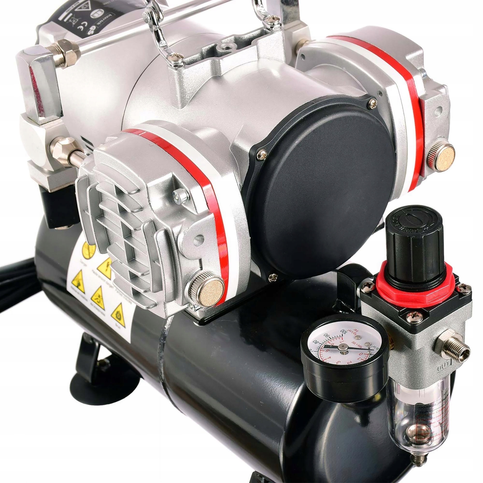- ЕКСПЛУАТАЦІЯ- Компресор працює з аерографами з насадками від 0,2 до 1,2 мм і з міні-фарбопультами з насадками до 0,8 мм. Завдяки високій ефективності та ребристій конструкції циліндрів (охолодження) ви можете фарбувати весь час без перерви.