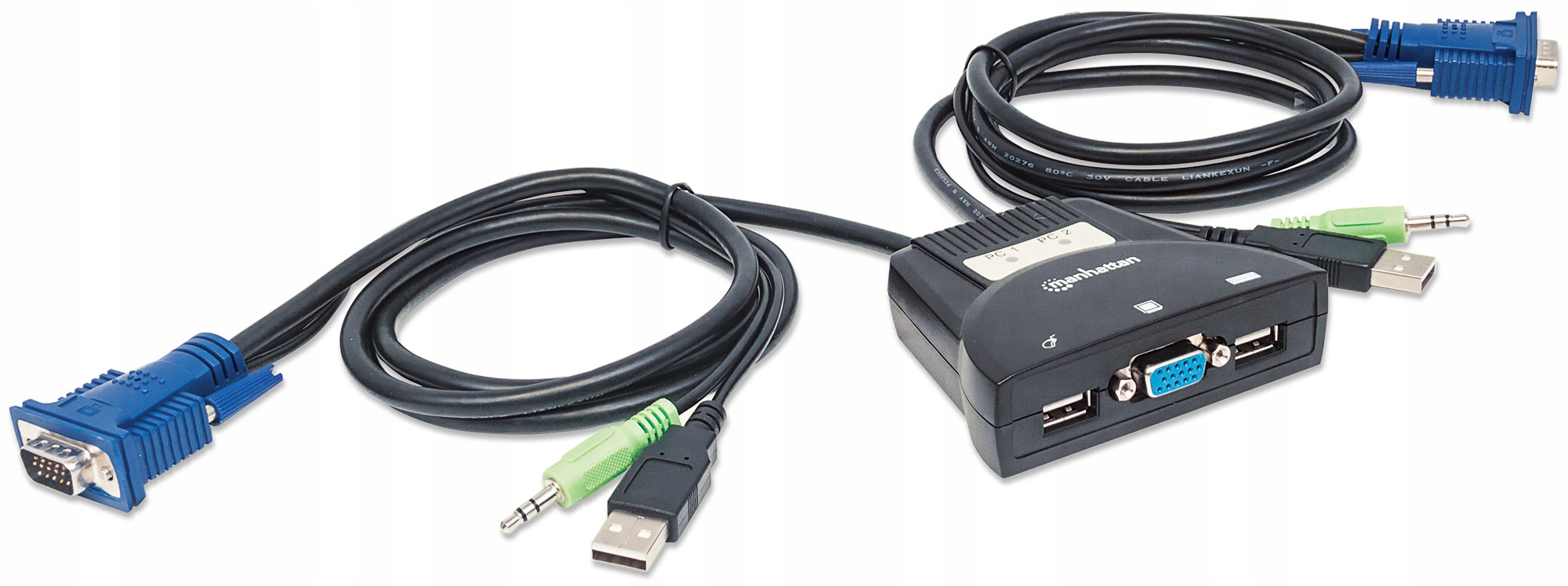 2-портовий USB-перемикач KVM Manhattan із аудіо