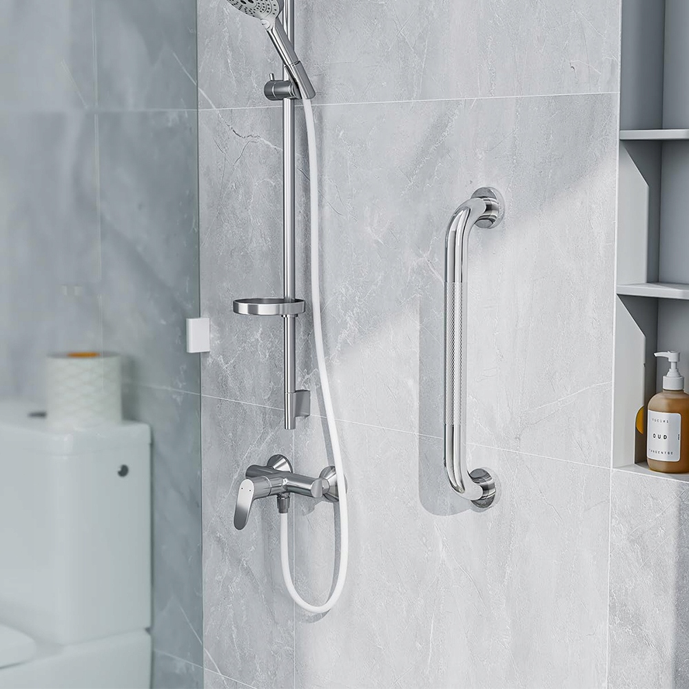 ✅ Поверхня має радіоматеріал , який є анти -слизом, навіть у вологих умовах. Кут дуги 90 ° відповідає принципом ергономічної ручки.
