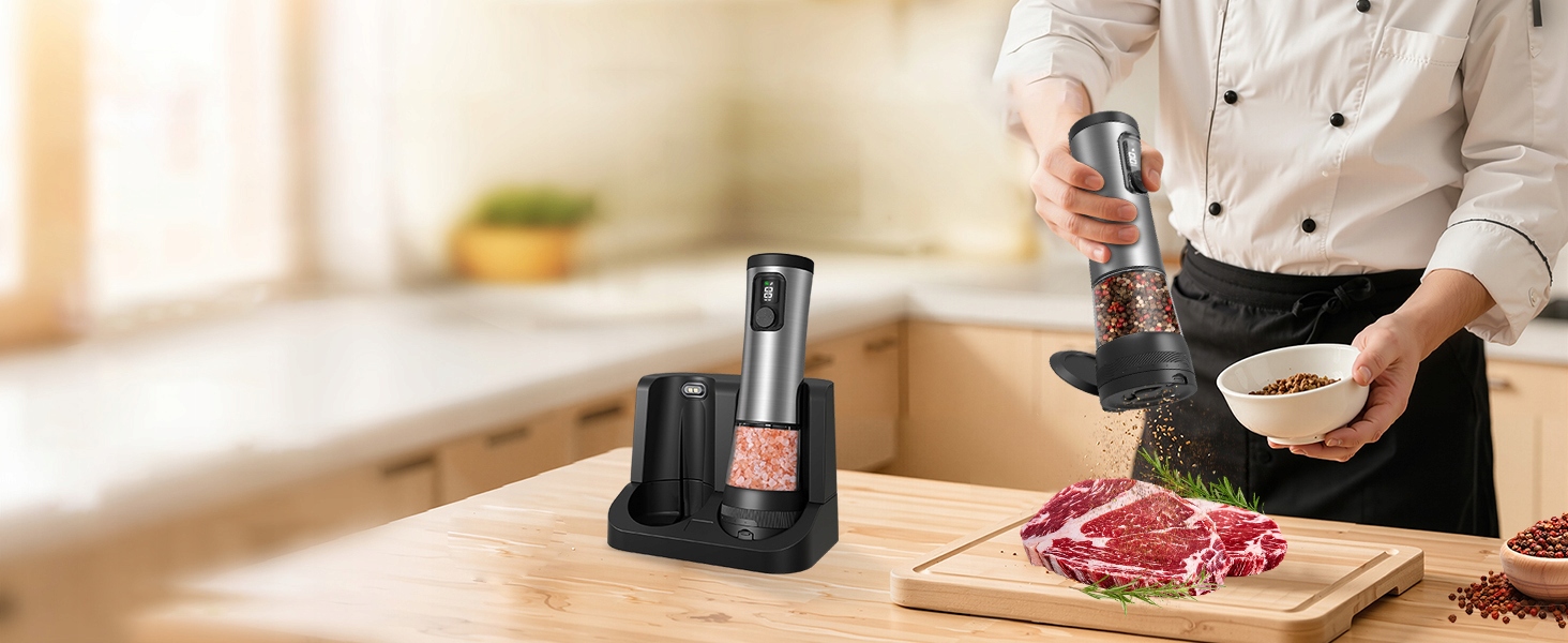 - Ця автоматична сільниця та перцемолка має сучасну естетику кухні, є компактною та портативною, що робить її ідеальною для дому, ресторану чи подорожей.