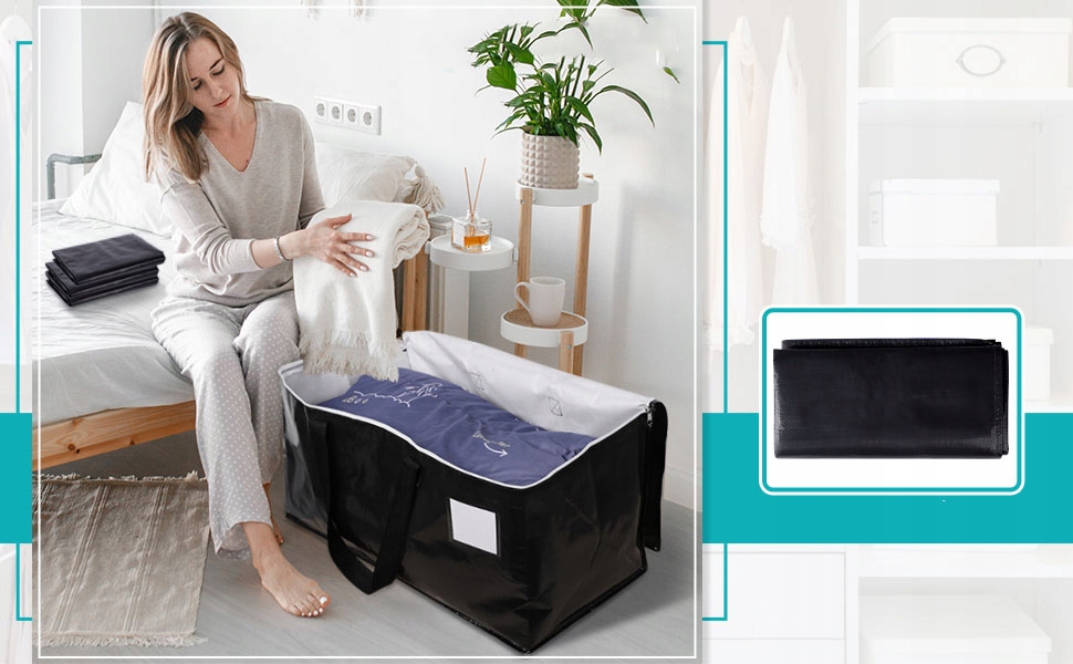 【Міцні та багаторазові мішки для зберігання мають армовану конструкцію з ручкою, що переносить, що полегшує їх підняття. На блискавці для носіння мішків використовується високоякісна подвійна блискавка, яка може повністю відкрити верхню частину сумки, щоб зручно відкрити, закрити та наповнити сумку.