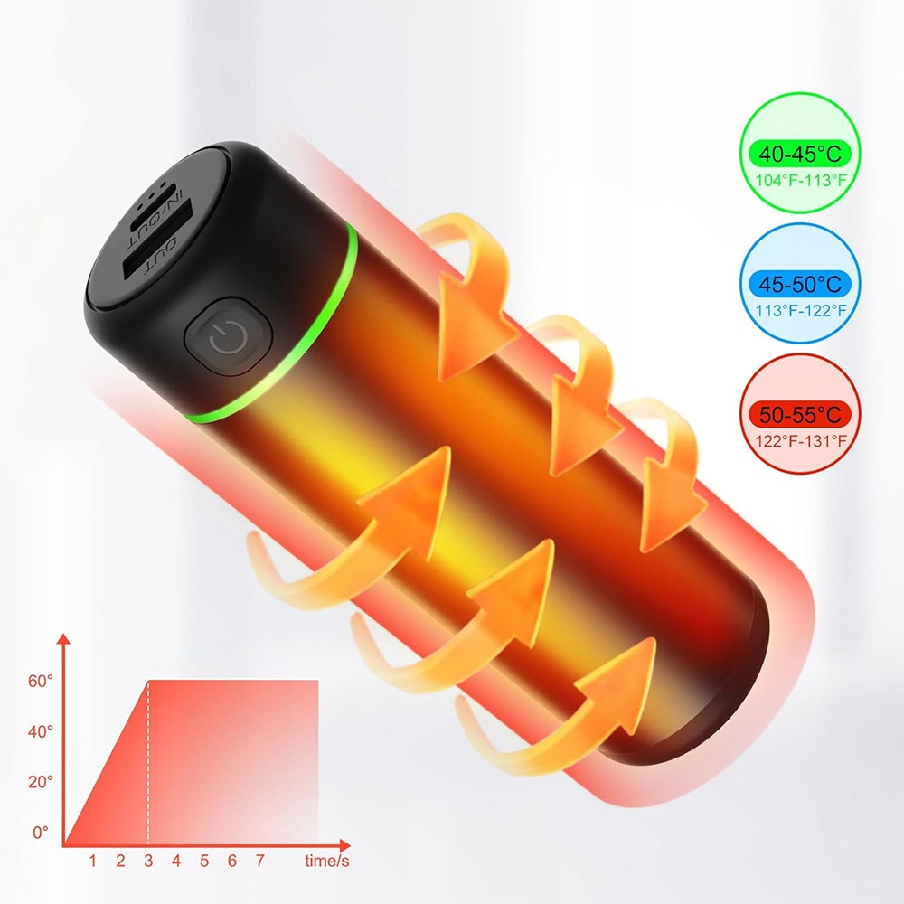 -✳mość використовуйте як ручний нагрівач, його також можна використовувати як банк живлення. Ємність одного акумулятора - 5000 мАг, а вихідна потужність - 5 В/2А.