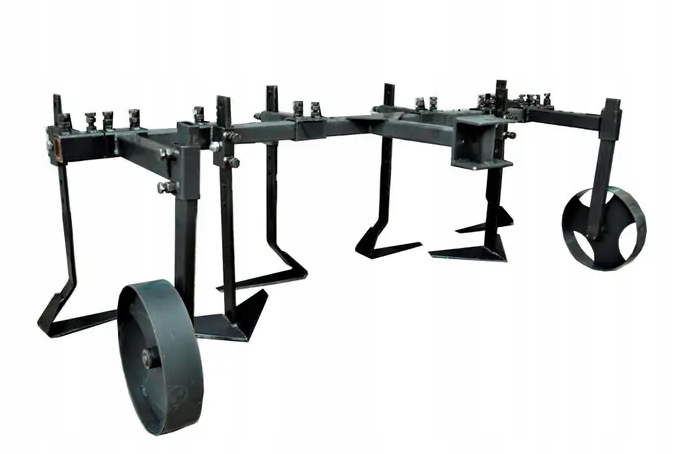 Рамка шириною 1600 мм виготовлена з профільної труби 40×40×4. У комплект входять два плоскорізи 320 мм і чотири плоскорізи 240 мм і спеціальні фіксатори до них. Широкорядна плоскофрезерна машина має опорні колеса з регульованою висотою. Діаметр коліс 240 мм.