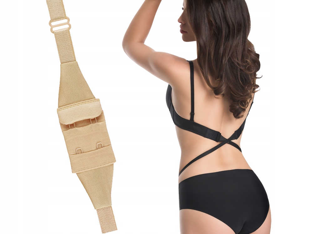 Двобортний ремінець, який опускає застібку бюстгальтера, буде корисним, коли більший виріз на спині відкриває ремінець бюстгальтера. Бретель підходить до всіх видів бюстгальтерів з двобортною застібкою. Він доступний у білому, чорному, екрю та бежевому варіантах.