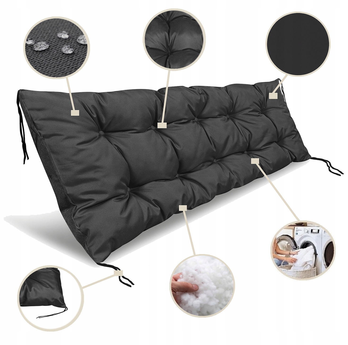 2 садові подушки 120x40 см для лавки-гойдалки водонепроникні чорні