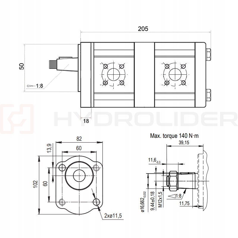 2-СЕКЦІЙНИЙ ГІДРАВЛІЧНИЙ НАСОС GR2 ЛІВИЙ 19/11,3 см3 продуктивність 27,1/16,1 л/хв.
