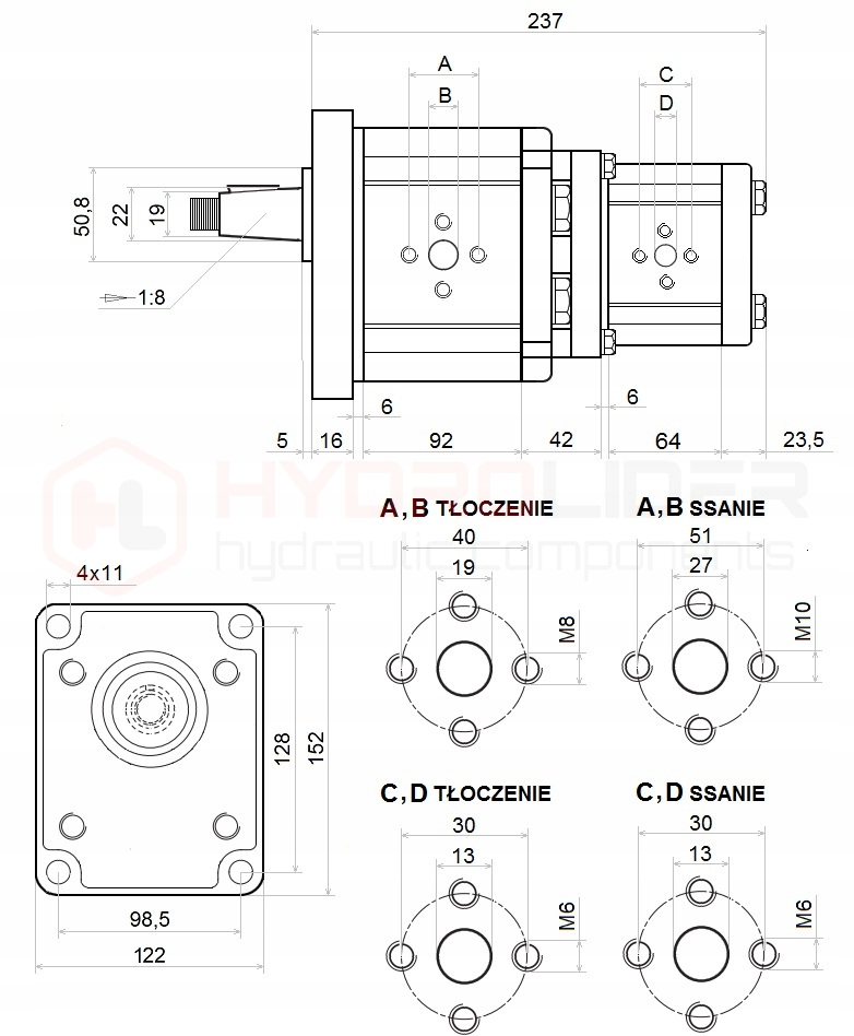 2-СЕКЦІЙНИЙ ШЕСТЕРЕНЧИЙ ГІДРАВЛІЧНИЙ НАСОС
