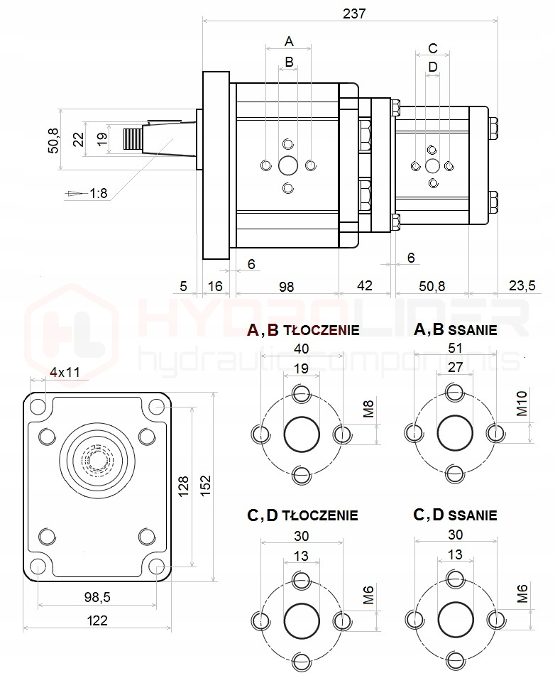 2-СЕКЦІЙНИЙ ШЕСТЕРЕНЧИЙ НАСОС ЛІВИЙ 39/4 см3 ГІДРОЛІДЕР
