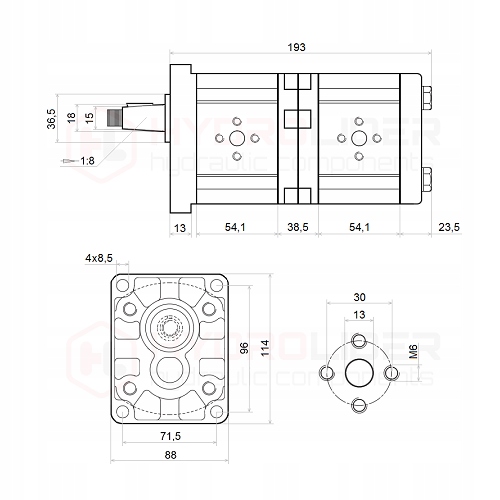 2-СЕКЦІЙНИЙ ШЕСТЕРЕНЧИЙ НАСОС ЛІВИЙ 6/6см3/об HYDROLIDER