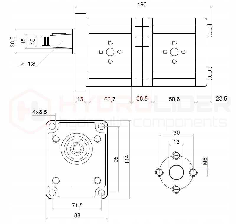 2-СЕКЦІЙНИЙ ЗУБЧИЙ НАСОС, ПРАВИЙ, 10/4 см3 ГІДРОЛІДЕР