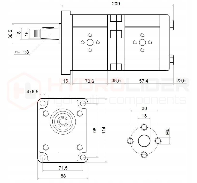 2-СЕКЦІЙНИЙ ЗУБЧИЙ НАСОС, ПРАВИЙ, 16/8 см3 ГІДРОЛІДЕР