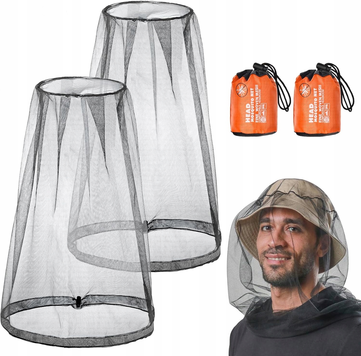 МОСКІТО МЕРЕЖА, 2 штуки на голову, сітка для комарів для обличчя, сітчаста кришка, захист обличчя, піші прогулянки, захист комах комарів