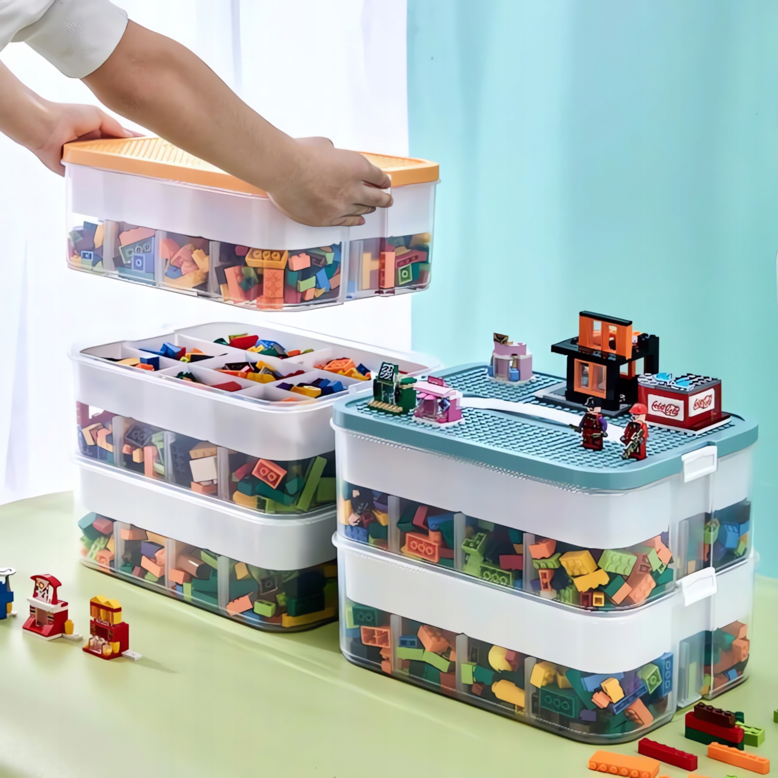 Купівля контейнера іграшок, дозволяє зберігати порядок у кімнаті. Завдяки окремим відсікам та контейнерам, організатор полегшує зберігання блоків/іграшок і дозволяє швидко знайти елементи, які шукаються під час гри.