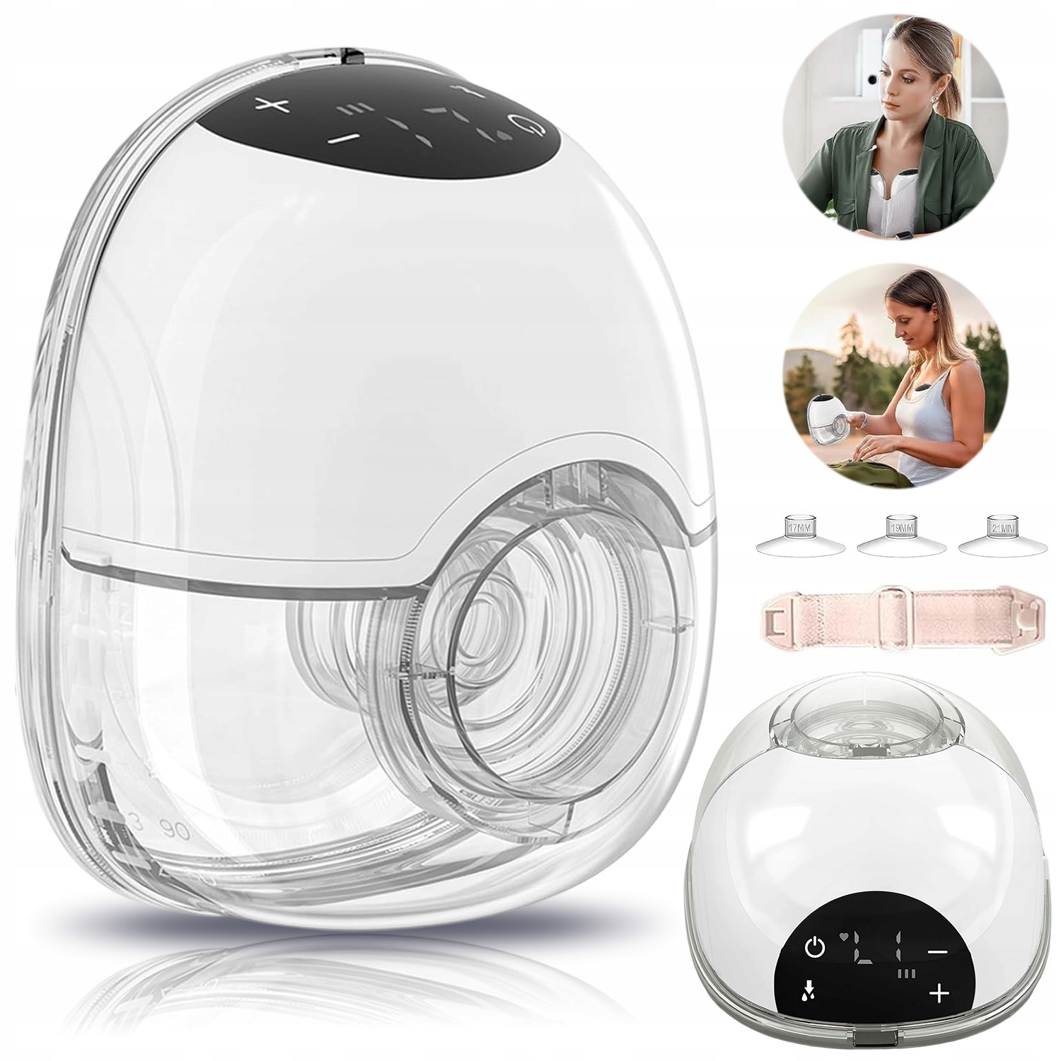 Ергономічний дизайн стабільно прилягає до грудей, дозволяючи вільно виконувати повсякденні дії - розмовляти по телефону, працювати за ноутбуком або доглядати за дитиною. Тиха робота (<30 дБ) дозволяє використовувати вночі або під час зустрічей. Плоска форма робить молоковідсмоктувач непомітним під одягом — як під футболкою, так і під світшотом.