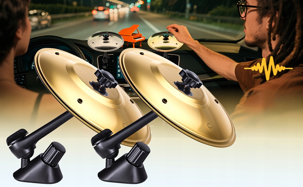 Виготовлені з високоякісної нержавіючої сталі, звук стуку чистий і чистий, порівняний зі справжніми тарілками, перетворюючи вашу машину на мініатюрну барабанну сцену за лічені секунди!