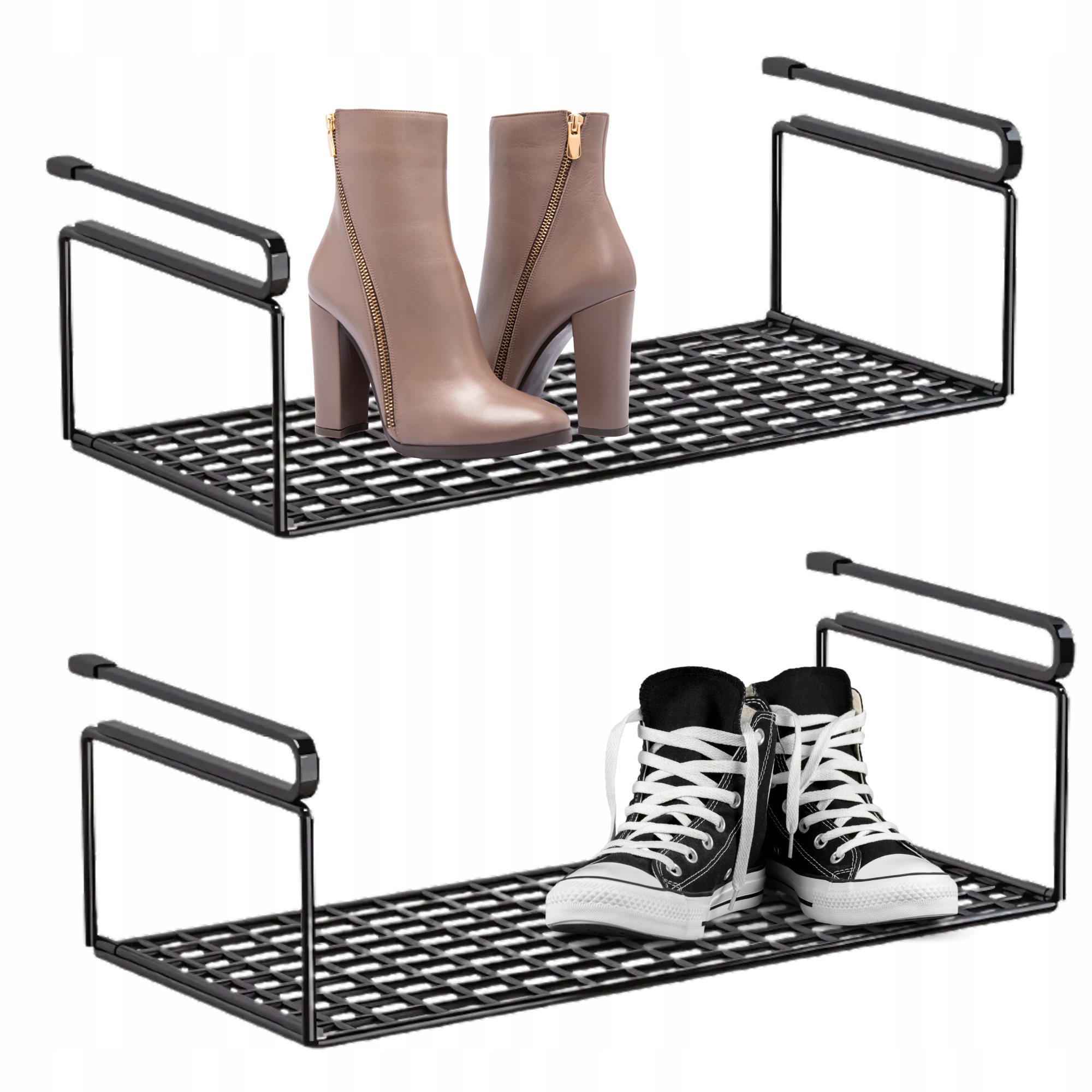 ☑ збільшити ємність гардеробу без додаткових меблів! Організатор дозволяє ефективно розвивати місце під полицею , що ідеально підходить для невеликих просторів. Ви можете легко встановити його без свердління - просто просуньте його на полицю. Завдяки сильній металевій сітці взуття або аксесуари добре провітрюються, що допомагає підтримувати їх у ідеальному стані.