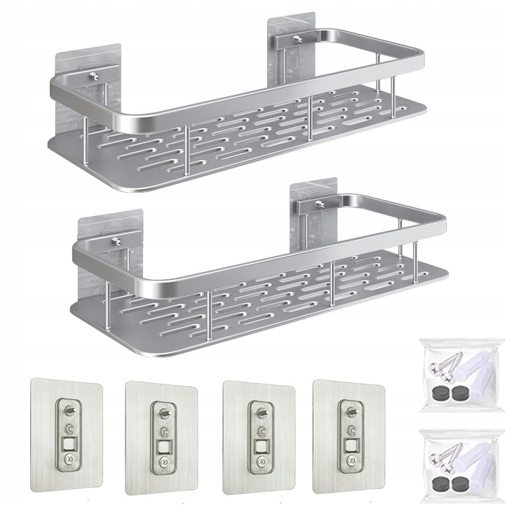 2 ШТ ПІДВІСНА ПОЛИЦЯ САМОКЛЕЮЧА СРІБНА НАСТІННА ДЛЯ ВАННОЇ КІМНАТИ ДЛЯ ДУШУ