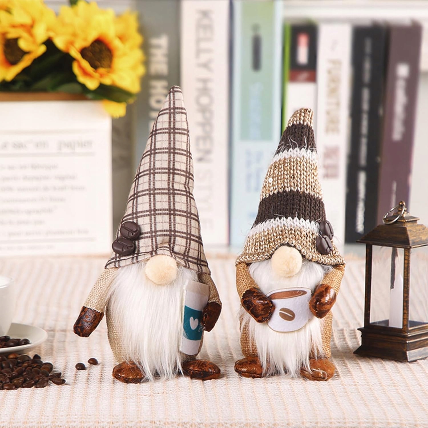 ⭐️2 штуки, кавовий гномик, осіння прикраса, картатий, шведський гномик Tomte, до свята врожаю, плюшевий орнамент⭐️
