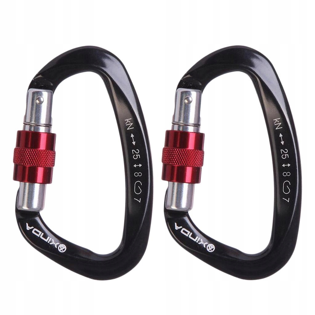 2 шт. 25KN карабін, затискач, алюмінієве D-кільце, міцний, чорний+червоний