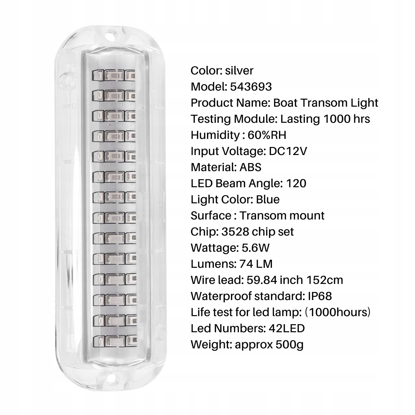 2pcs 42llld човен зливний світла Світла Широкий світло -синій підводний понтонний морський світло