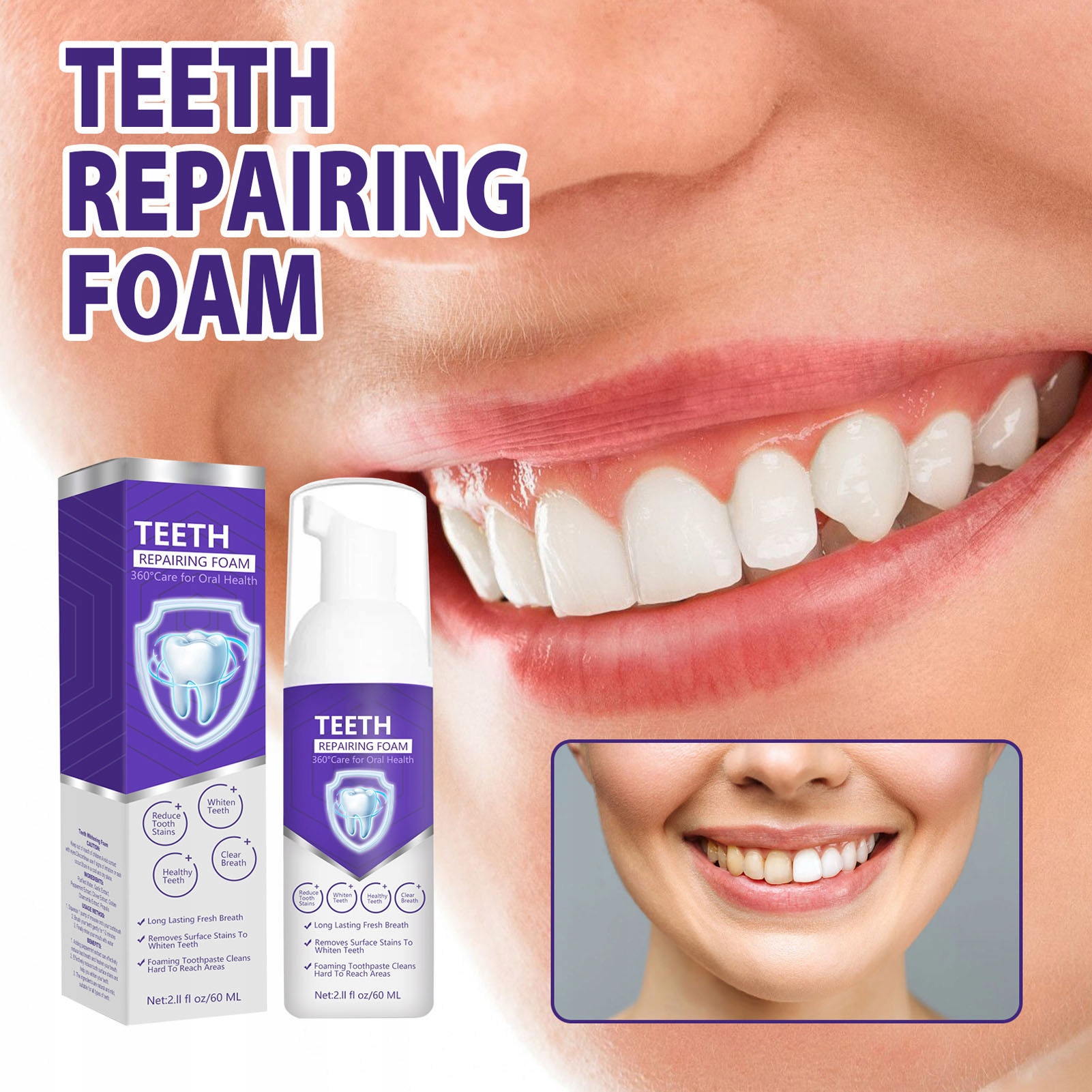 1. Видаліть плями: Фіолетова відбілююча зубна паста може доглядати за зубами та яснами, погіршити дискомфорт у роті і попрощатися з курили та чайними плямами.