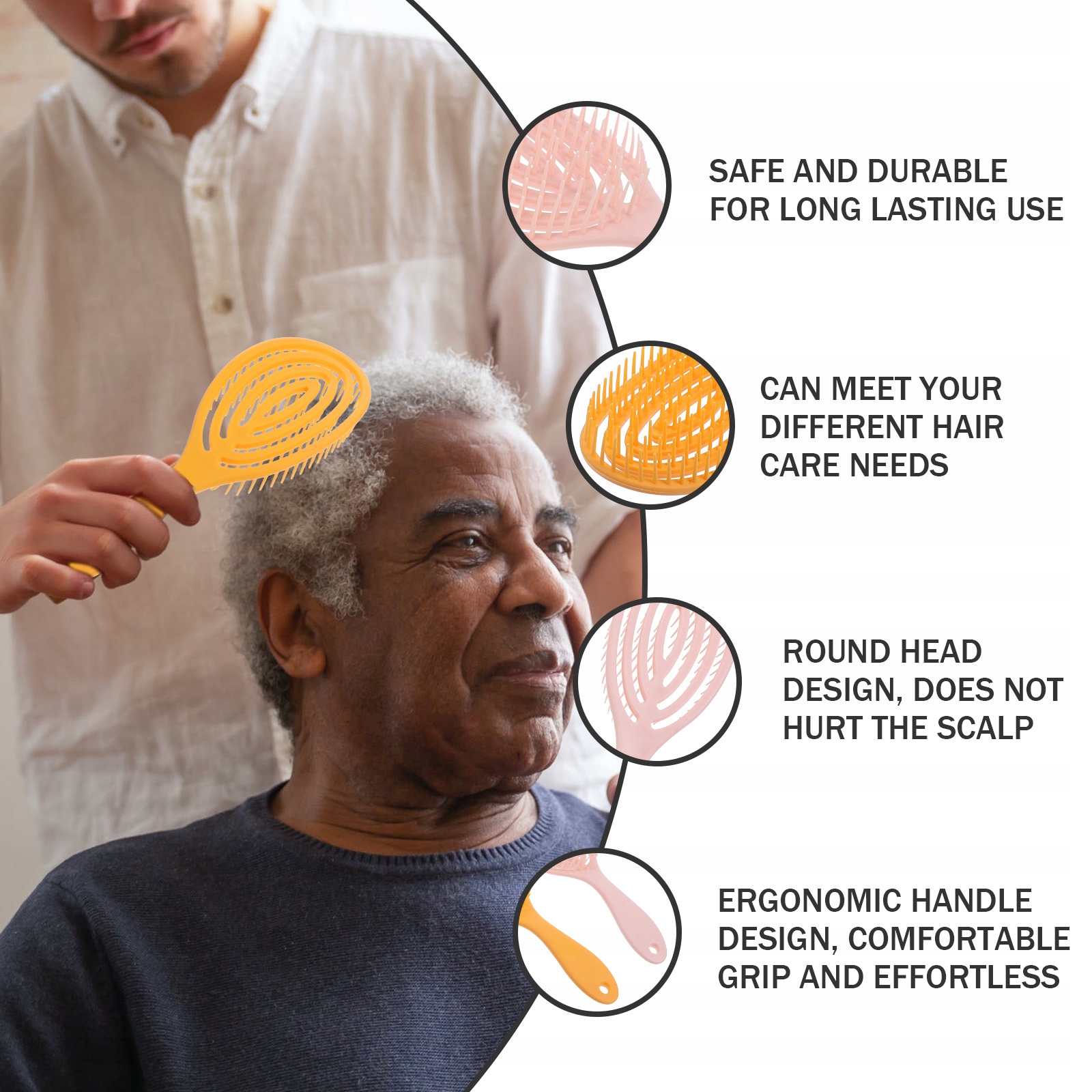 ✅Виготовлена з матеріалу ABS, ця масажна гребінець є безпечною та довговічною для тривалого використання, має форму зубів, підходить для перукарні чи домашнього використання. Ергономічний дизайн ручки, зручна рукоятка та легкість. Він може краще масажувати голову та розслабляти тіло й розум.