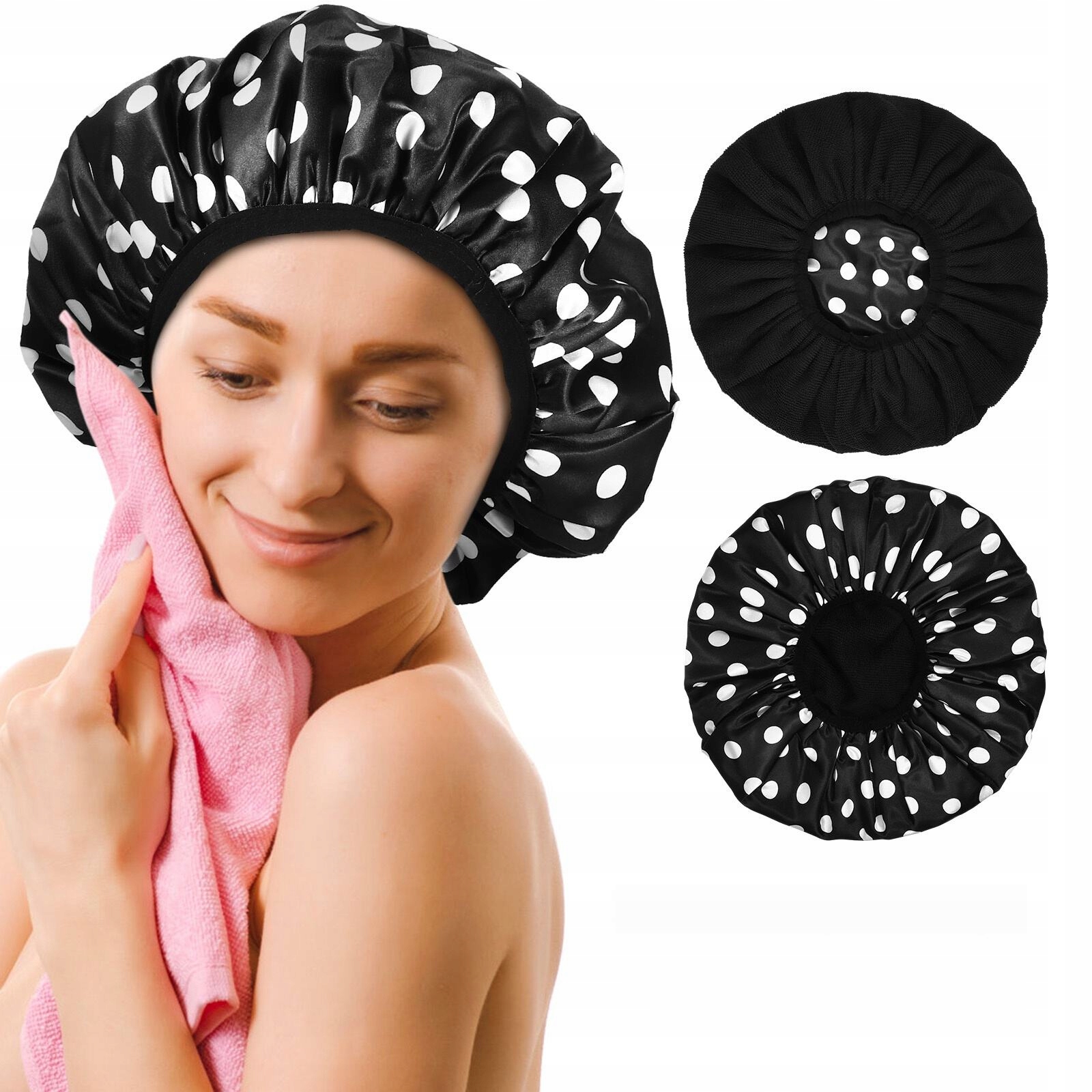 2 шт. БАГАТОРАЗОВІ ШАПОЧКИ ДЛЯ ПЛАВАННЯ ПОТОВЩЕНІ КРУГЛІ ТОЧКОВИЙ ВИЗІРУНОК ШАПОЧКИ ДЛЯ ДУШУ ЕЛАСТИЧНА БАН