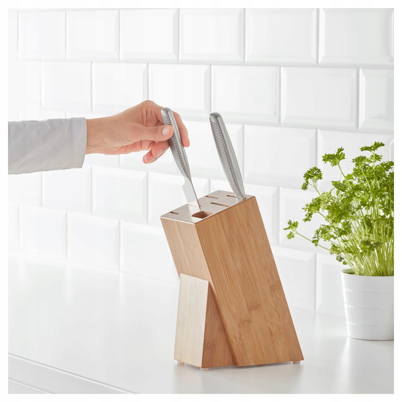 Ви шукаєте елегантне та функціональне рішення для зберігання ножів на кухні? Ось блок Hyvla для ножів, виготовлених з міцного бамбука, який не тільки збереже ваші ножі, але й додасть природного шарму вашому кухонному простору.