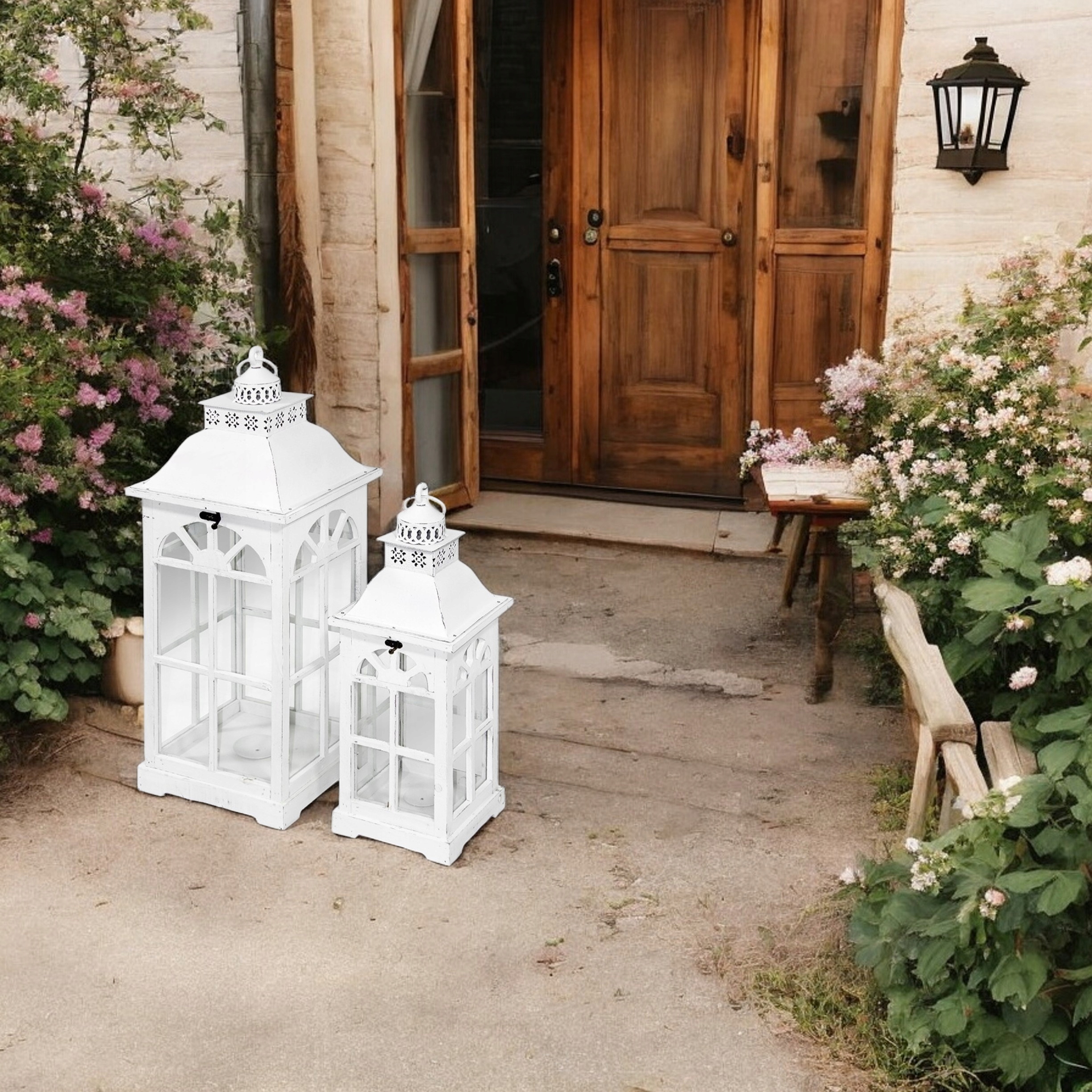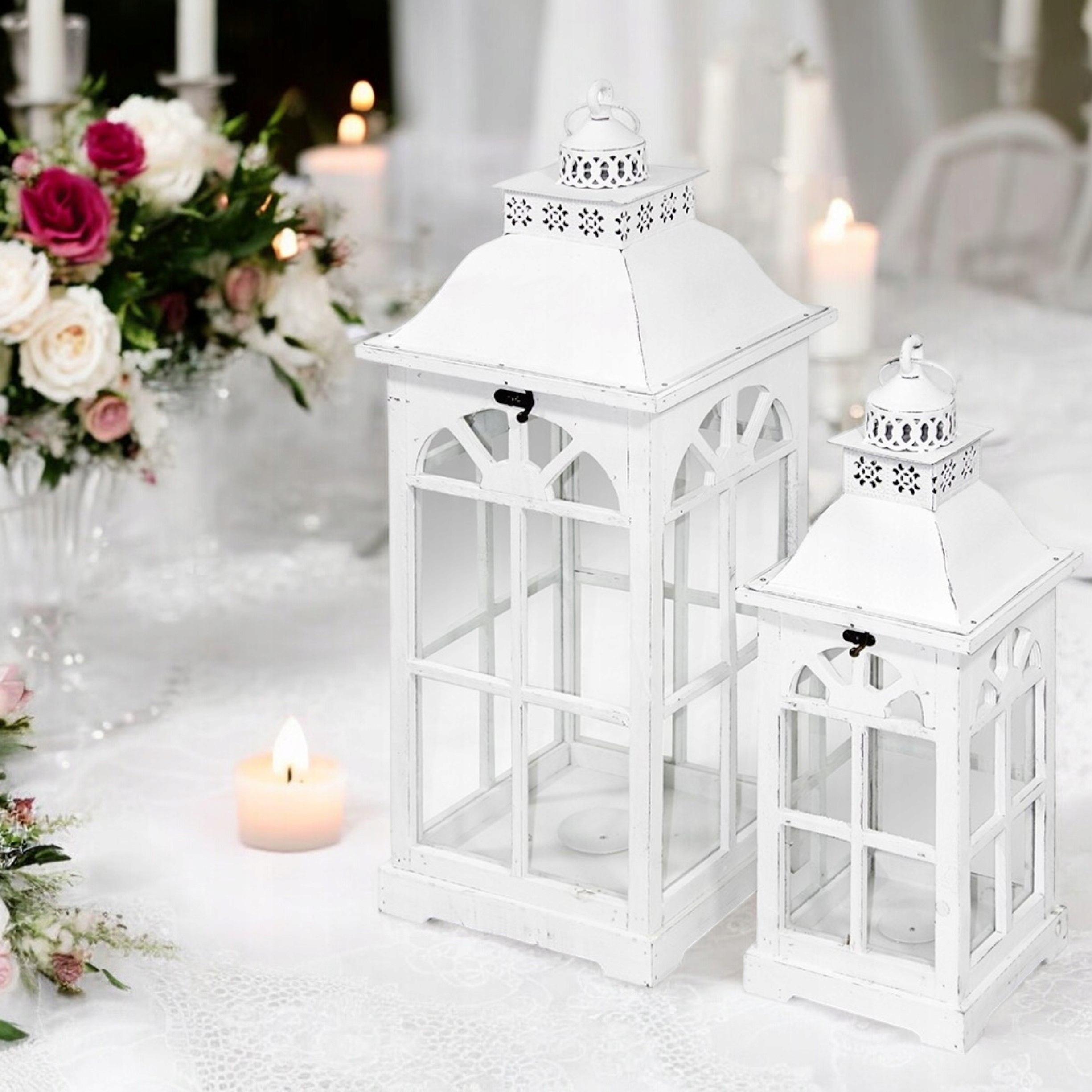 2 шт. Декоративні ліхтарі Білі дерев'яні ліхтарі Ліхтар Великий свічник