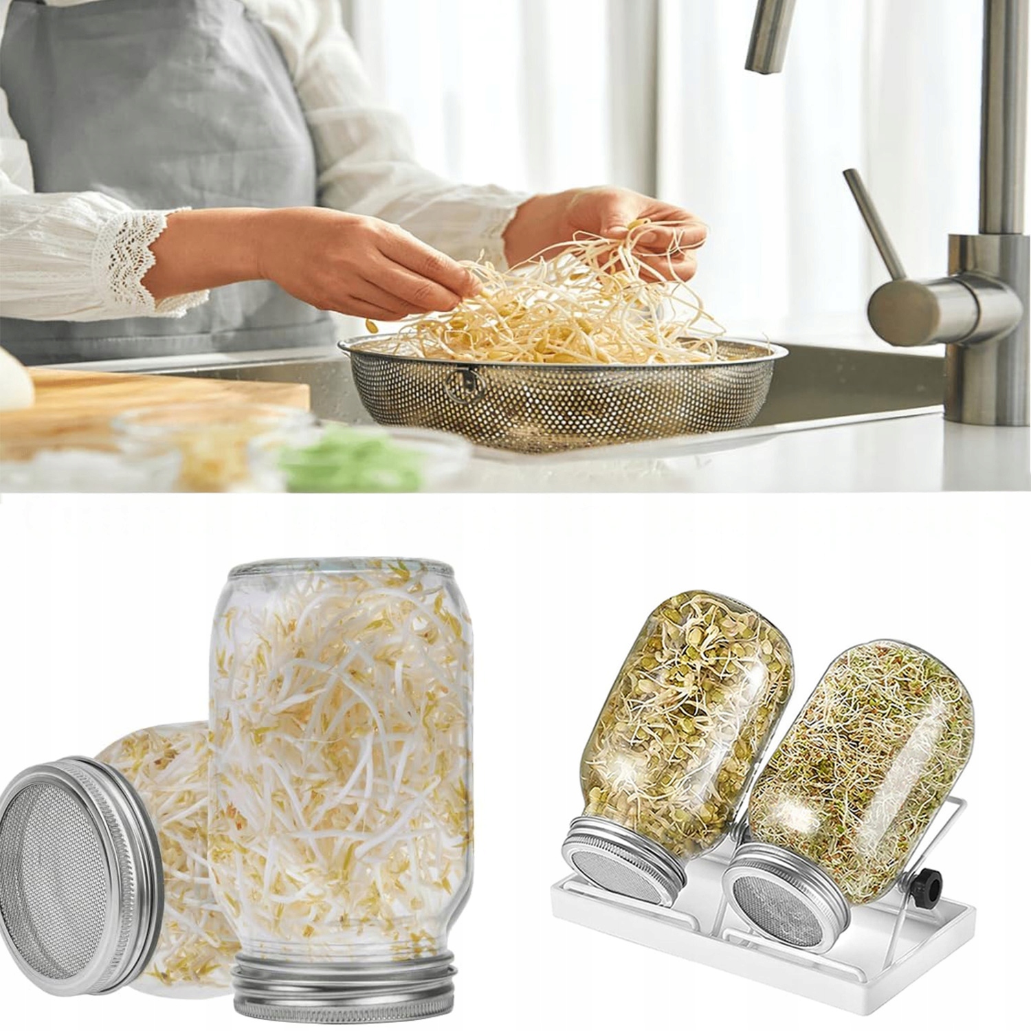 Завдяки двом скляним банкам ви можете одночасно розводити різні види паростків, насолоджуючись свіжими, сповненими вітамінами для щоденних аксесуарів.