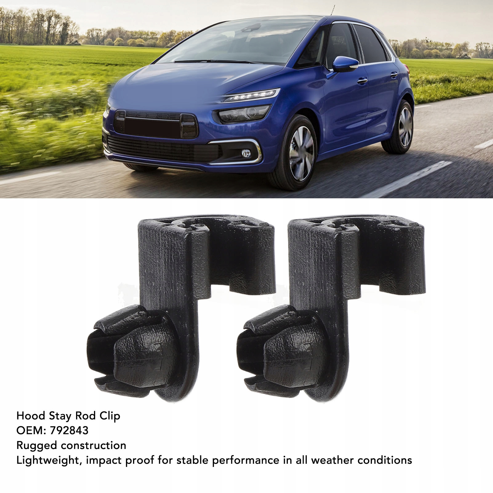 5. Матеріал преміум-класу: виготовлений із пластику, цей затиск для дужки капота легкий, але ефектний, забезпечуючи стабільність і довговічність за різних погодних умов.