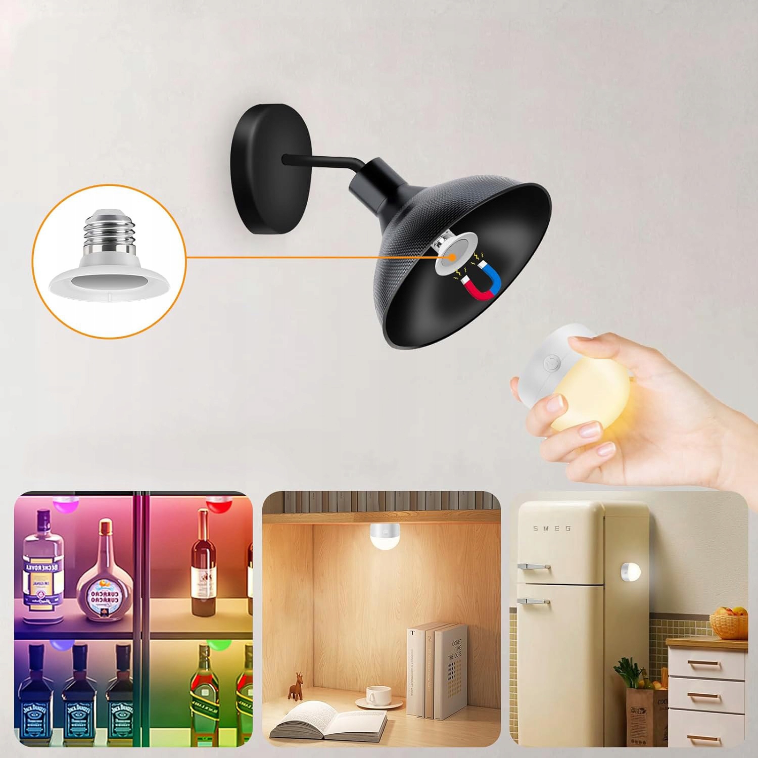 💡 З магнітною шкарпеткою E27. Ця портативна акумуляторна лампочка постачається з магнітною ниткою E27, яка сумісна з 90% настільних ламп, настінних ламп, торшерів тощо. Ви можете встановити лампочку безпосередньо на неелектризований тримач, прикріпити її безпосередньо до металевої поверхні або прикріпити лампочку в іншому місці за допомогою магніту, що входить у комплект. Ідеально підходить для внутрішнього та зовнішнього використання, а також для освітлення під час кемпінгу, походів, риболовлі або як аварійне освітлення.