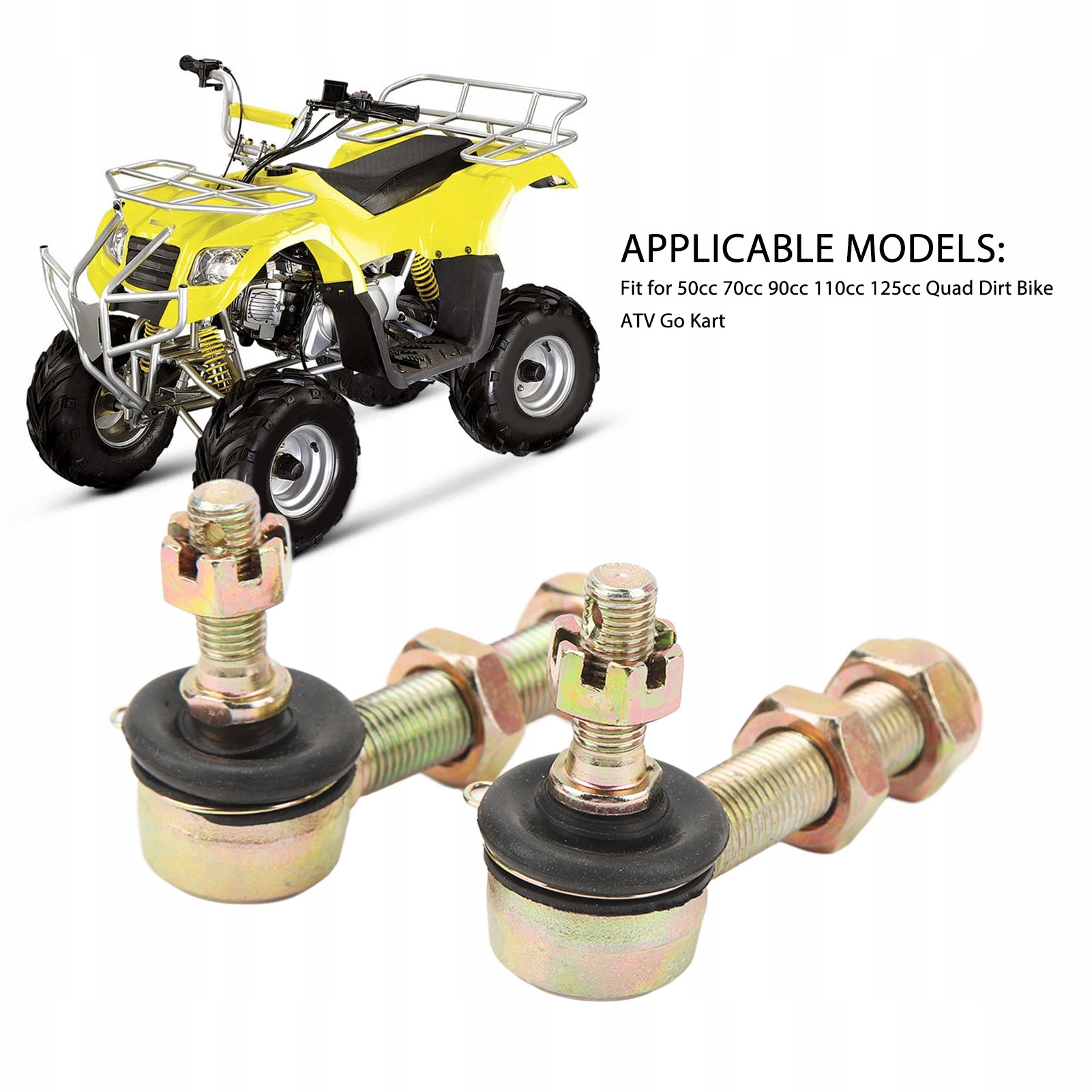 1. Застосовні моделі: кульовий шарнір рульової тяги підходить до квадроциклів ATV 50cc, 70cc, 90cc, 110cc, 125cc, що забезпечує більш професійне використання.