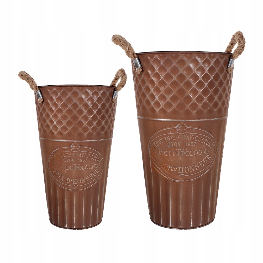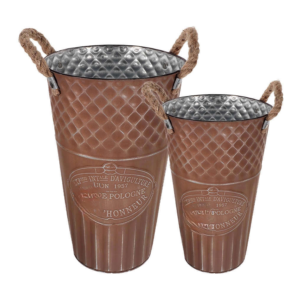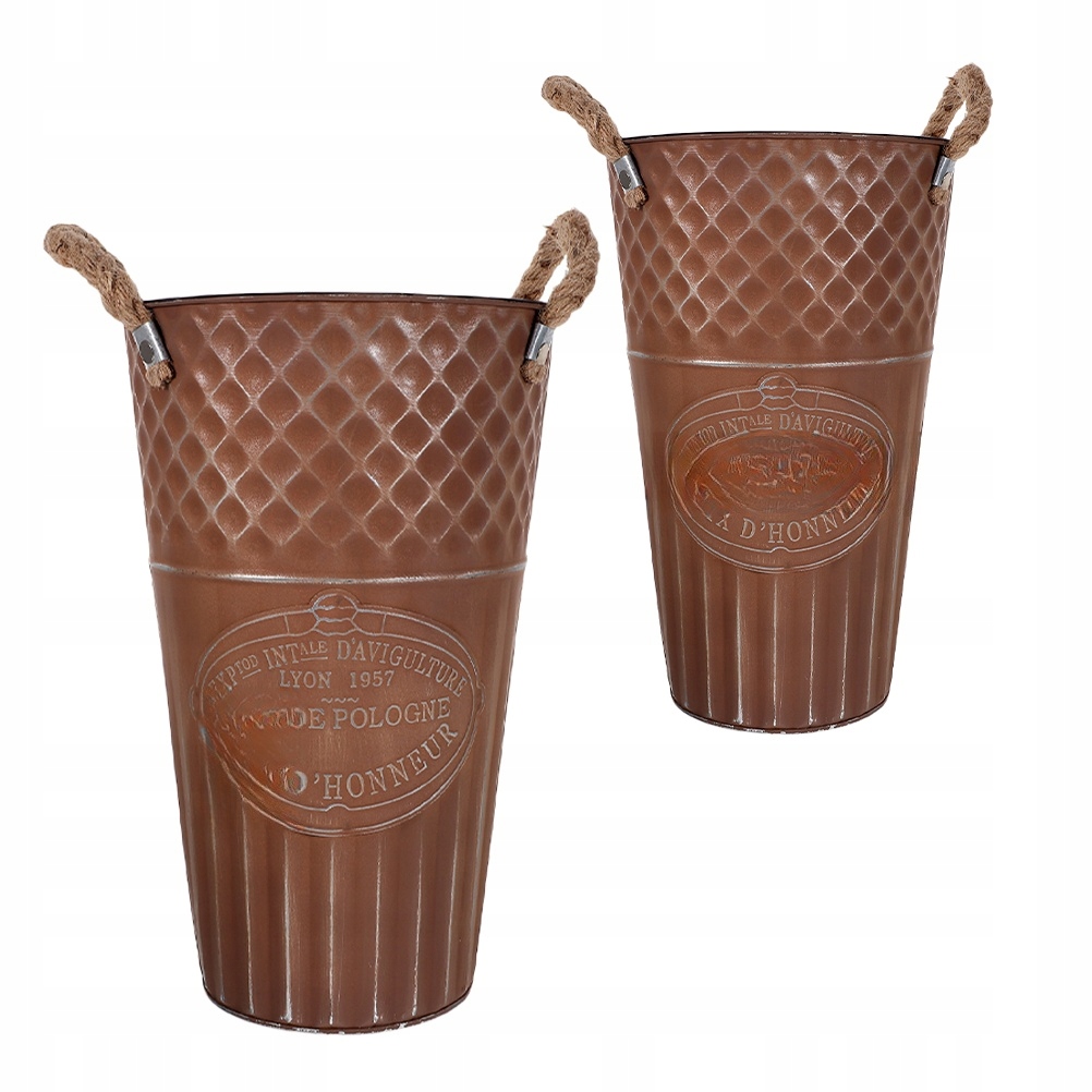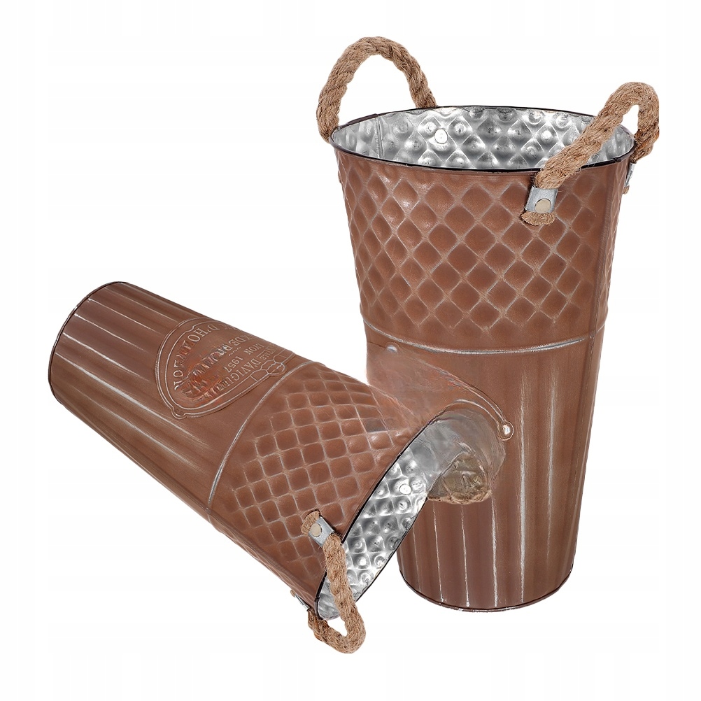 2 ШТ. ЗАЛІЗНА ВАЗА-ВІДРО ДЛЯ КВІТІВ З КОНОПЛЯНОЮ МОТУЗКОЮ