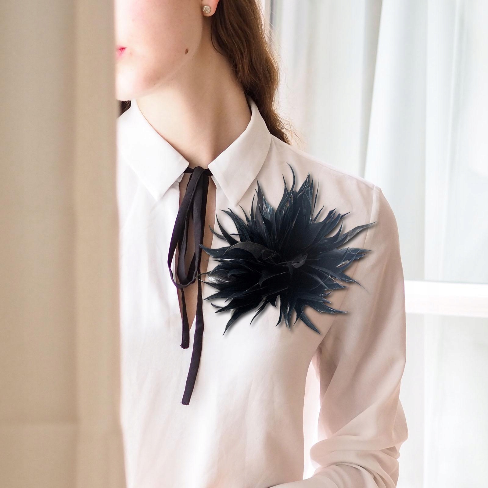 Брошка зі штучного пір'я для одягу, пальта, светра, сукні, сорочки, куртки, шарфа, шапки.