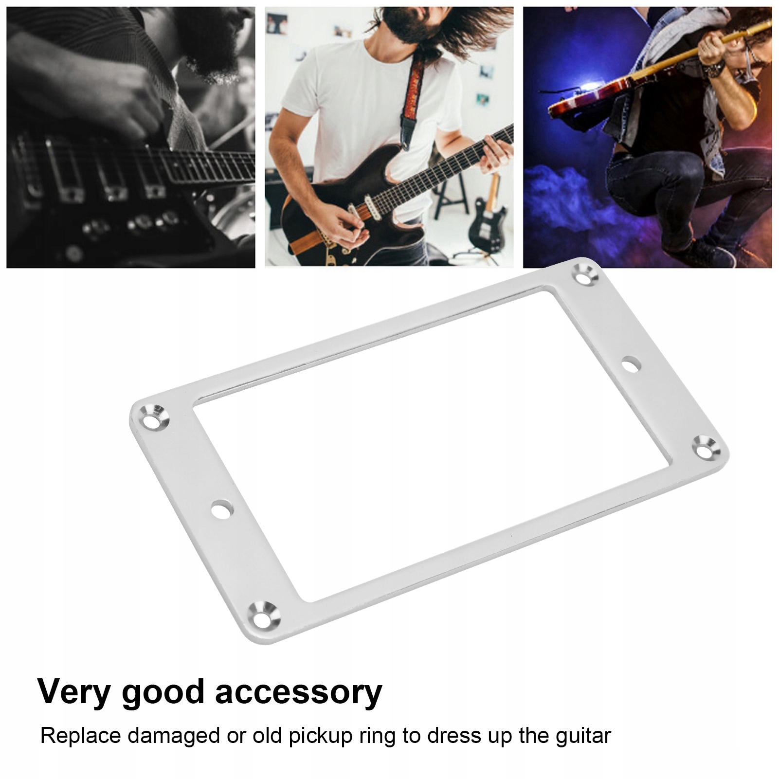 1. Структура алюмінієвого сплаву міцна та міцна, антидеформаційна. Дуже хороший аксесуар, він може замінити зламане або старе кільце звукознімача, щоб прикрасити вашу гітару
