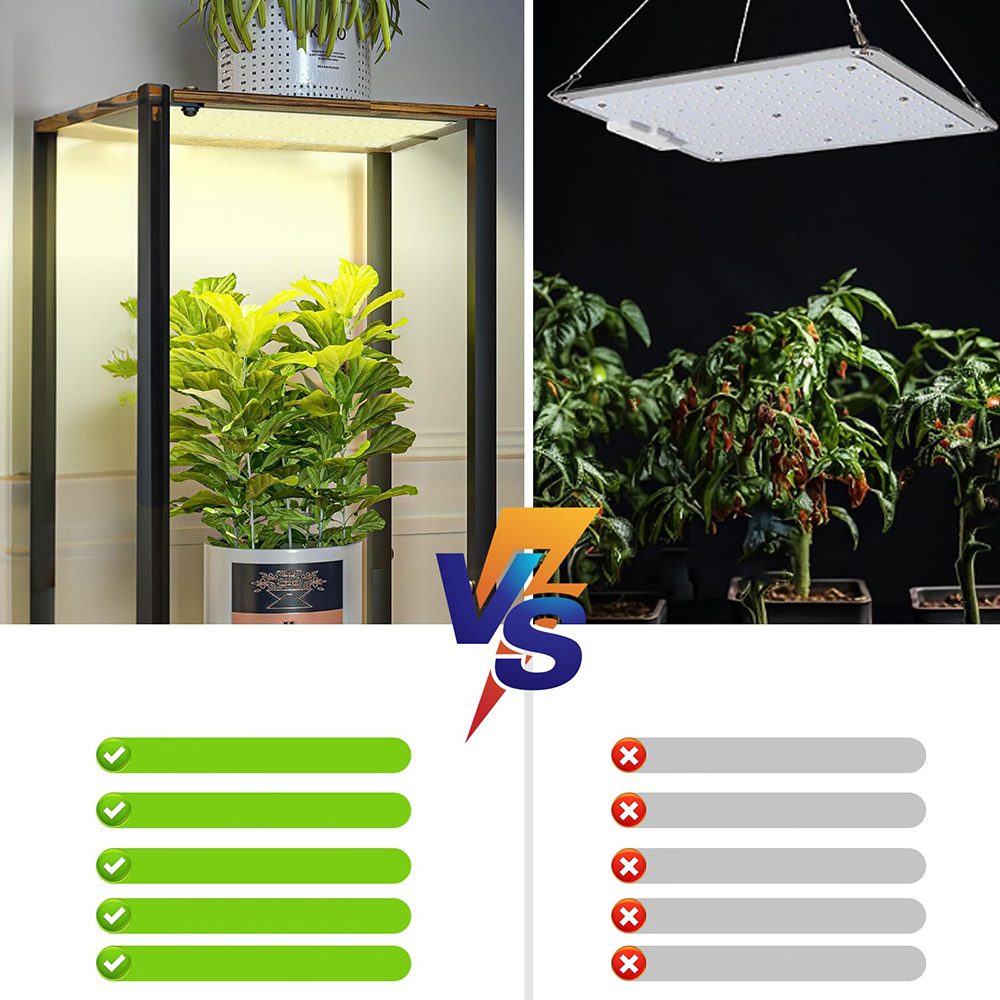 270 високоенергозберігаючих світлодіодів PPFD: оснащено двома надтонкими лампами для росту розміром 30 x 8 x 0,1 см з алюмінієвою задньою панеллю для чудового розсіювання тепла. Внутрішній світильник для вирощування використовує світлодіоди повного спектру, що складається загалом із 135 світлодіодів, і споживає лише 36 Вт, заощаджуючи до 60% енергії порівняно з іншими вбудованими світлодіодними світильниками.