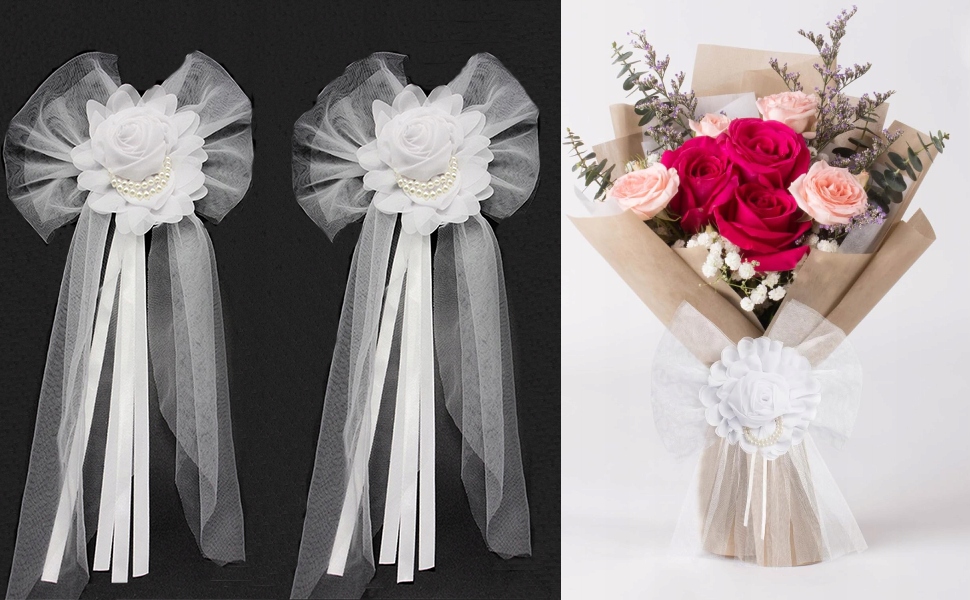 2 шт. Весільні прикраси для весільних луків з перловою шовковою стрічкою