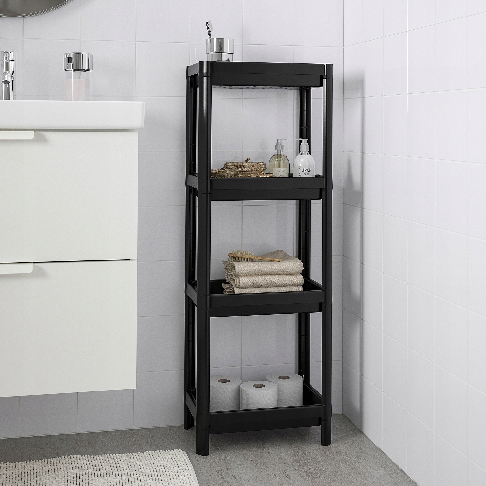 Ви шукаєте практичне та стильне рішення для невеликої ванної кімнати? Ось Vesken Книжкова шафа - Чорна 37x23x101 см, яка відповідатиме вашим очікуванням. Завдяки простому складі без використання інструментів, ви швидко та легко додасте додаткову полицю у свій простір. Шельф забезпечує стабільність та безпеку збережених предметів, завдяки високим країм з усіх боків.