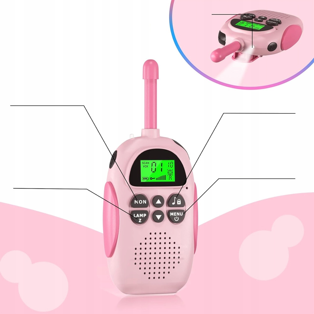 Розроблена для дітей віком від 3 до 12 років, ці прогулянки -талекі прості у використанні завдяки "PTT" руці з лівою рукою. Вважувати лише 80 грам дитячих радіостанцій легко переносити наймолодший.