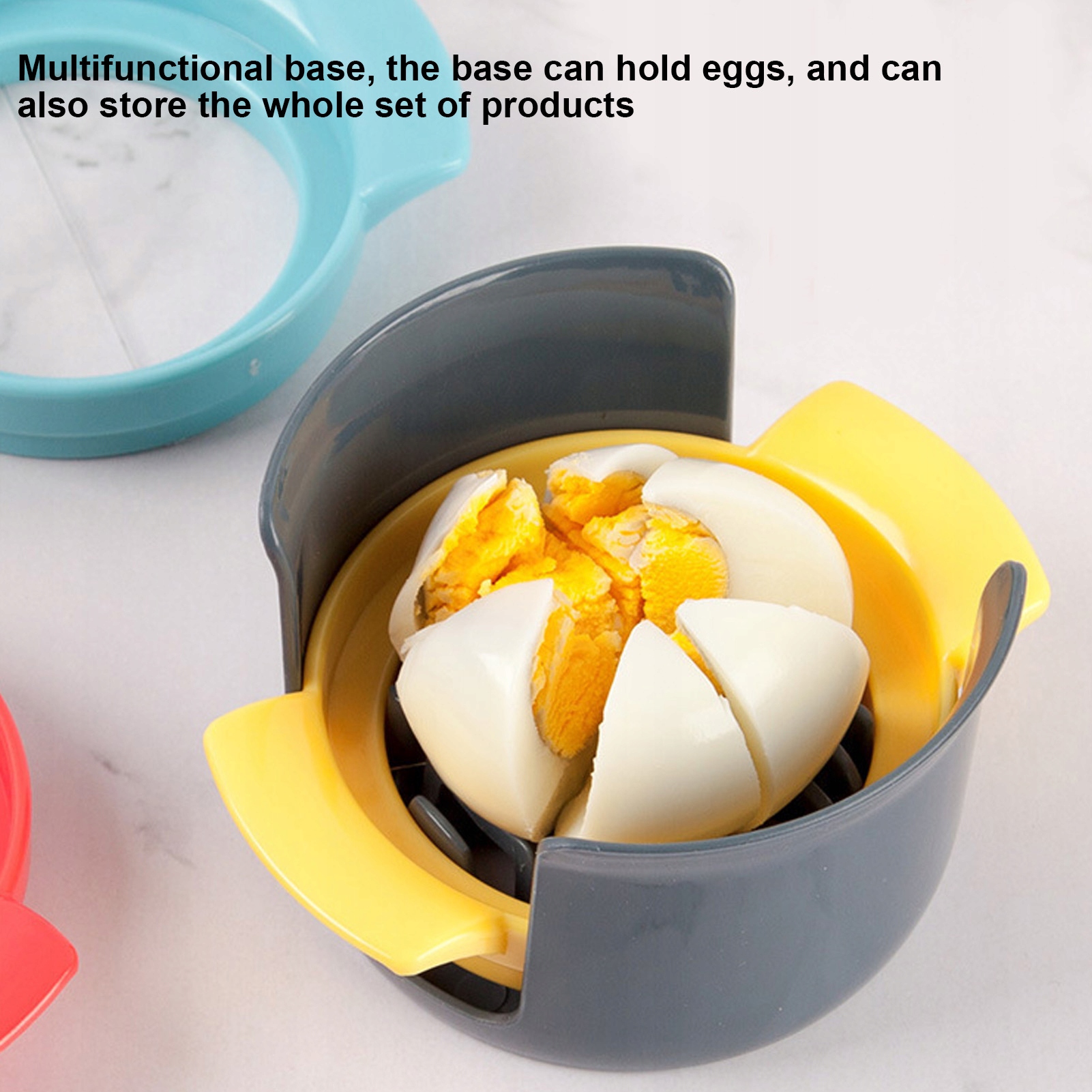 1. Багатофункціональна основа: основа може вмістити рубаючі яйця при вирізанні яєць, а також може зберігати весь набір продуктів після нарізки.