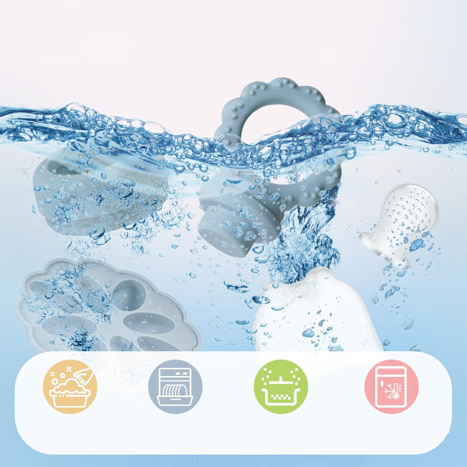 - Виготовлений з їжі силікону, не містить BPA, латексу або металу, тому це безпечно для вашої дитини. - Пічиці вони доступні в трьох різних розмірах, щоб відповідати дітям різного віку. Невеликий розмір підходить для дітей від 3 до 6 місяців. Середній розмір підходить для дітей від 6 до 12 місяців. Великий розмір підходить для дітей від 12 до 24 місяців. Усі частини можна промивати в посудомийній машині, і ми рекомендуємо приготувати 2 хвилини, щоб видалити слину та пил. та дієтичні добавки.
