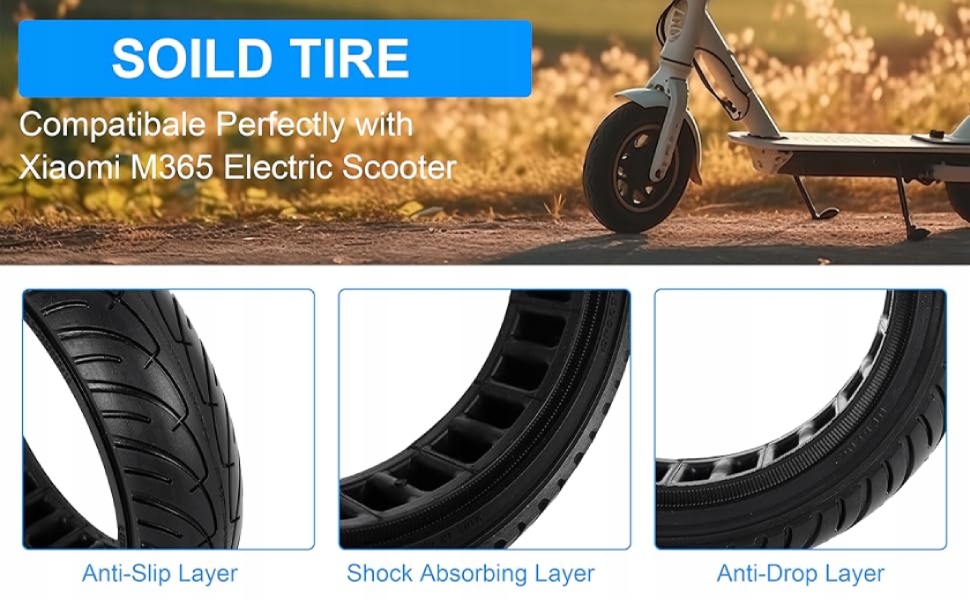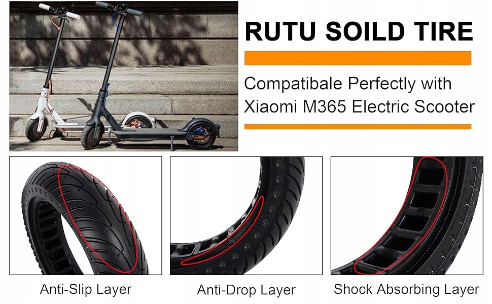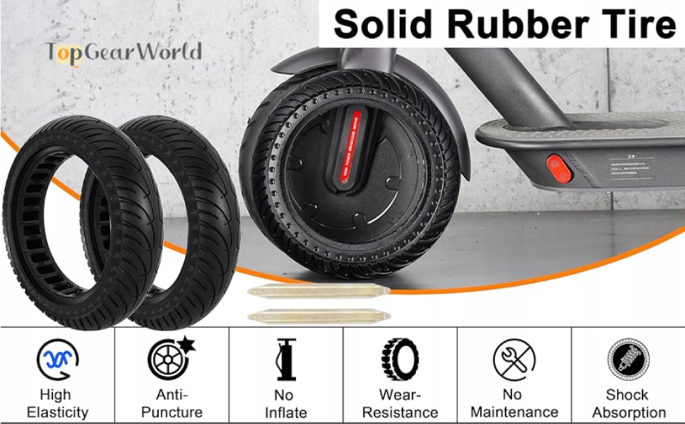 Ця суцільна шина 8.5x2 не потребує внутрішньої трубки, немає інфляції, вам не доведеться турбуватися про удар шини або проколу, і немає технічного обслуговування. Відмінна потужність подушки підтримує шину більш тверду, ніж традиційна пневматична шина.