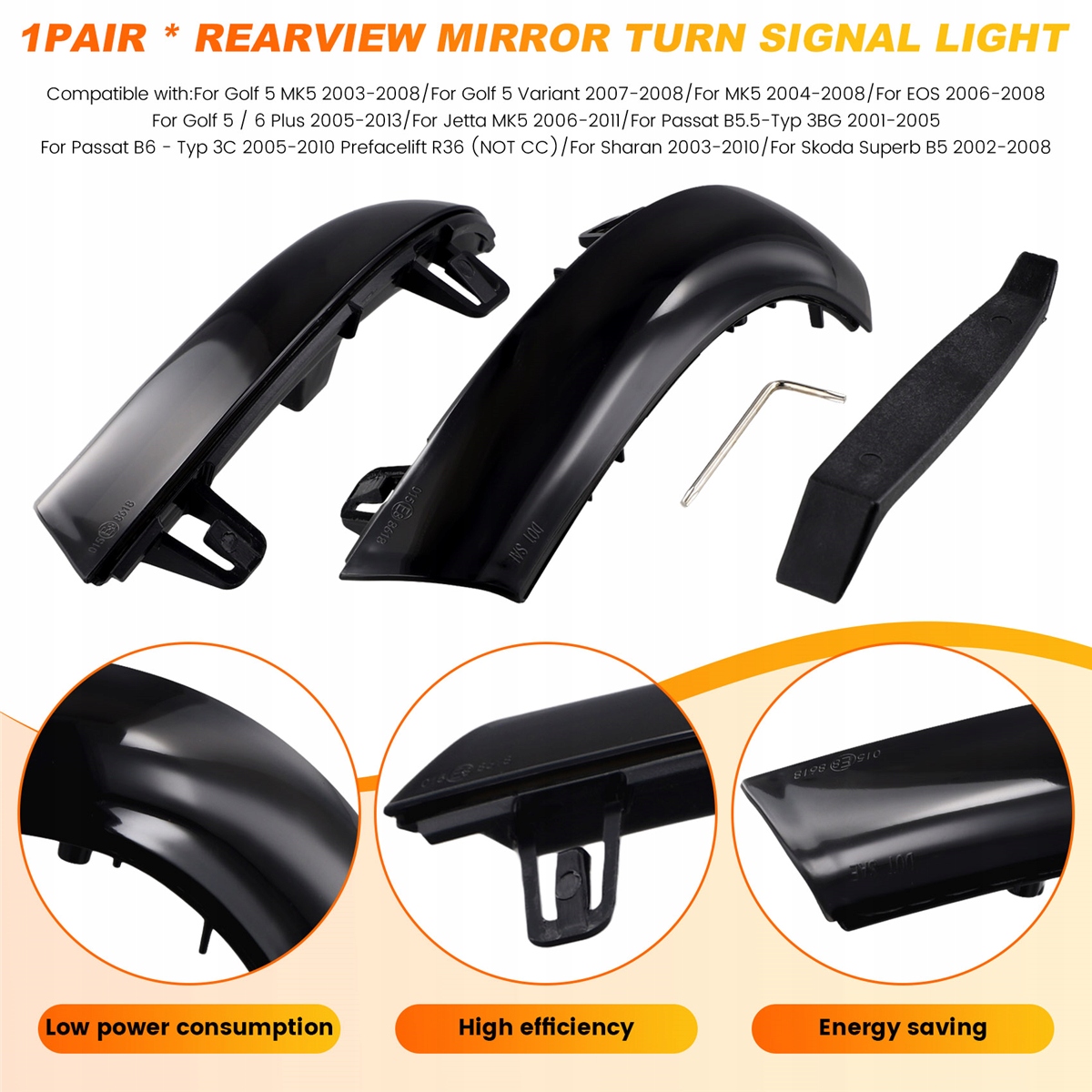 2 ПК. Динамічні індикатори напрямку для VW Golf 5 Jetta Mk5 Passat B5.5 B6 EOS Світлодіодний дзеркальний індикатор