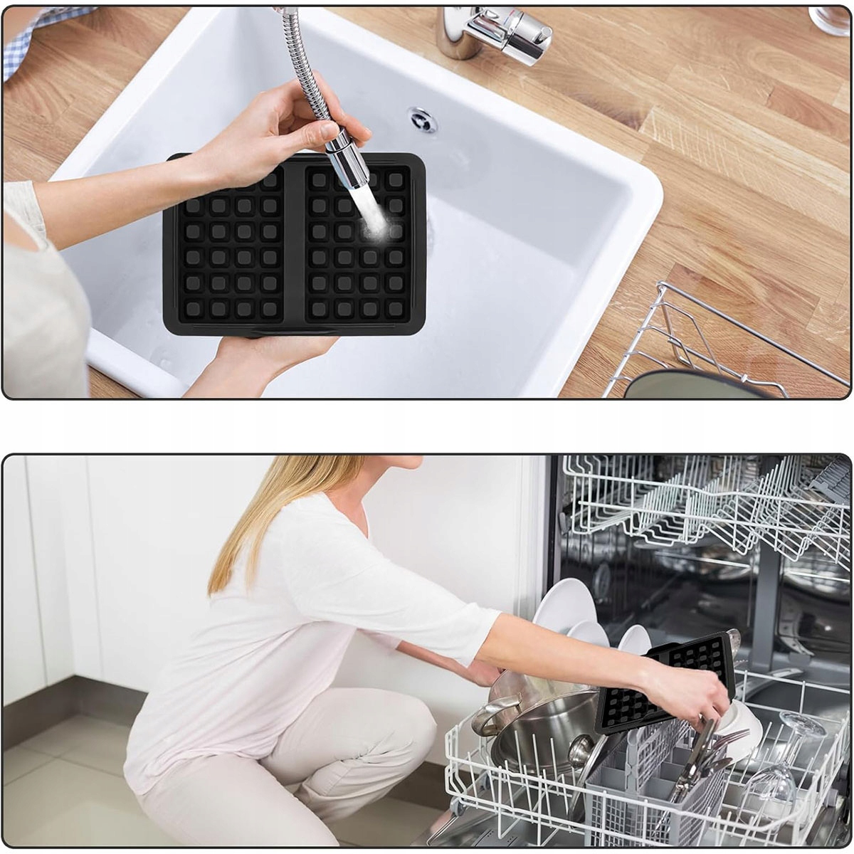 ⭐Наші вафельні вкладиші виготовлені з високоякісного харчового силікону (чорного кольору) і можуть витримувати температуру від -40 °C до 230 °C. Порівняно з металевими або скляними формами для випікання гнучкі силіконові форми для випічки менше збирають залишки їжі. Якщо змастити поверхню невеликою кількістю олії, їх буде легше вийняти з форми.